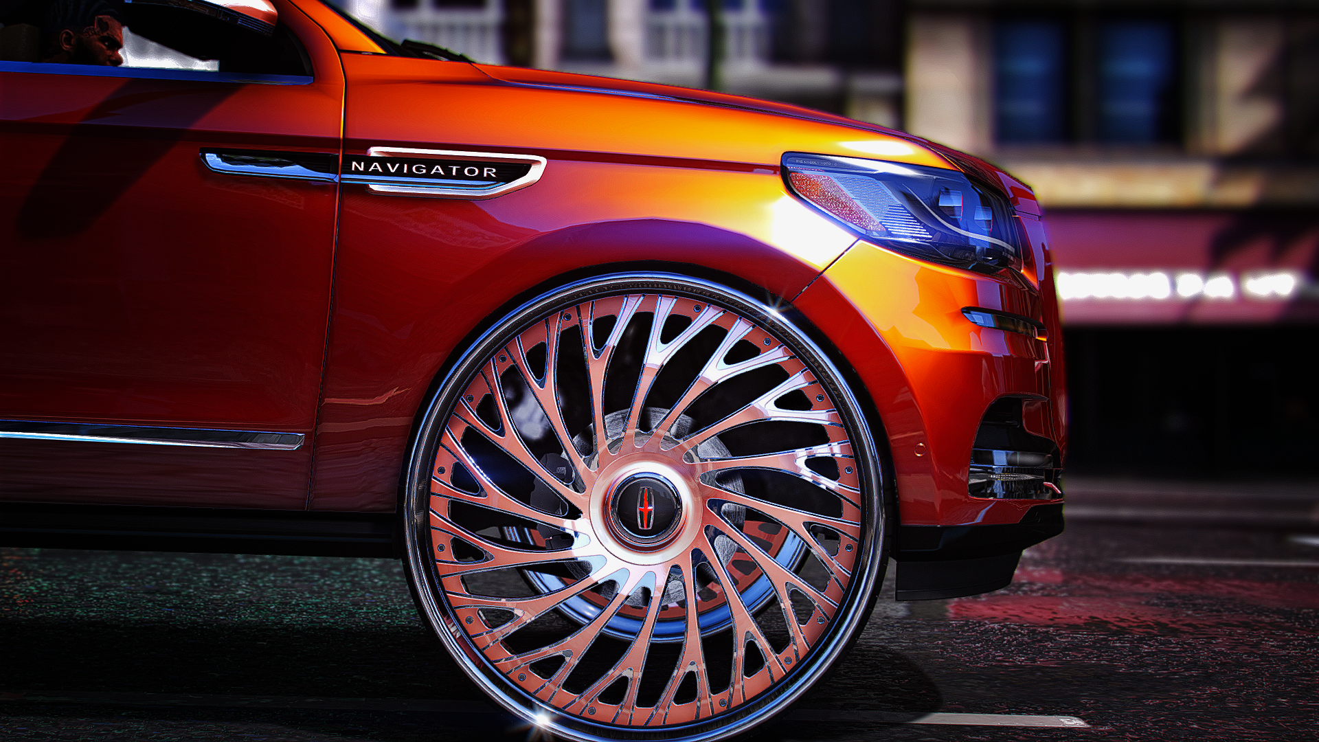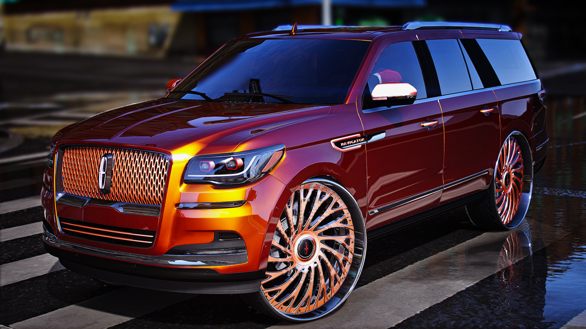 high quality 2022 lincoln navigator on 32 inch amani rims with the custom lincoln floating caps alligator inserts on the interior STORY MODE AND FIVE M READY