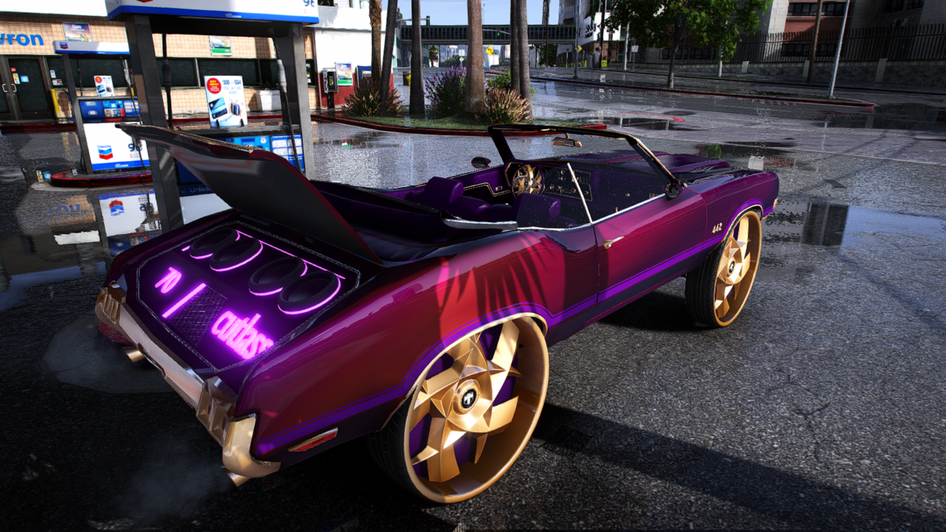 70 Drop top Cutlass on staggered DUB floaters with matchung steering wheel custom trunk and Ls swapped motor this is Story Mode and FiveM ready