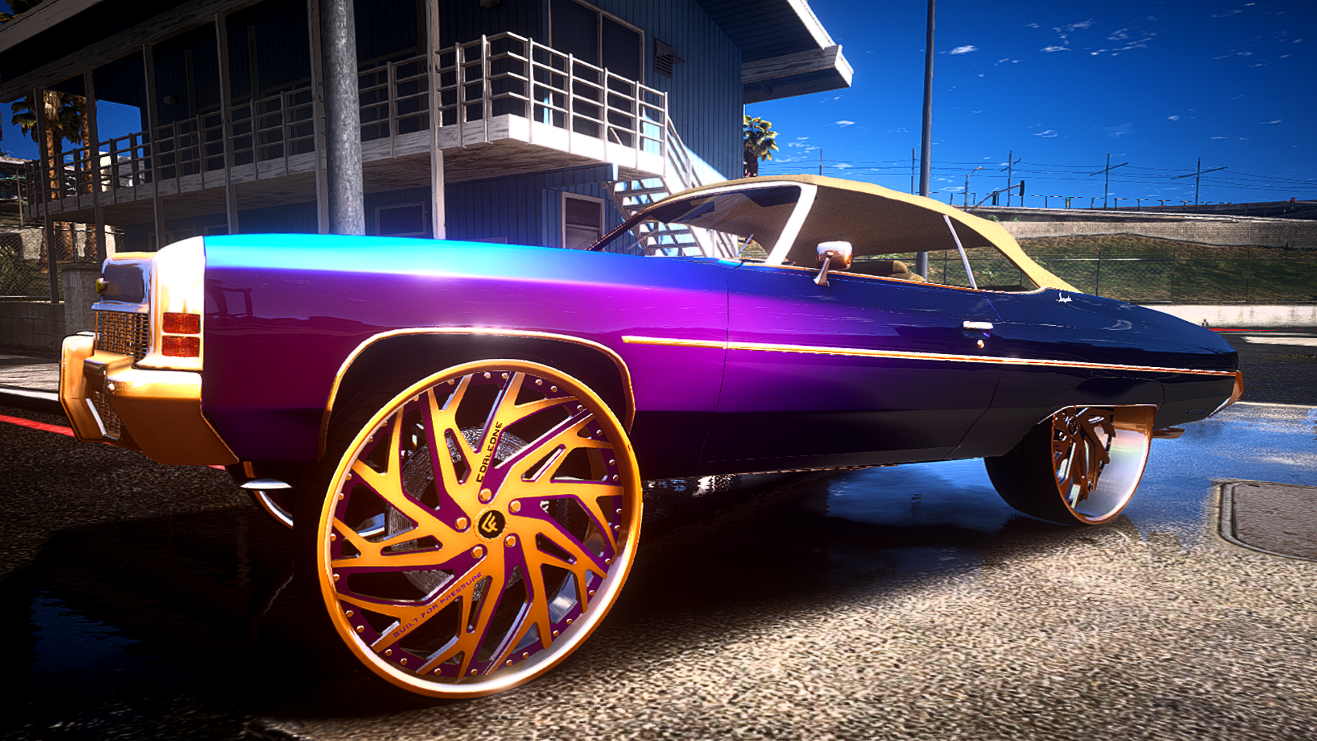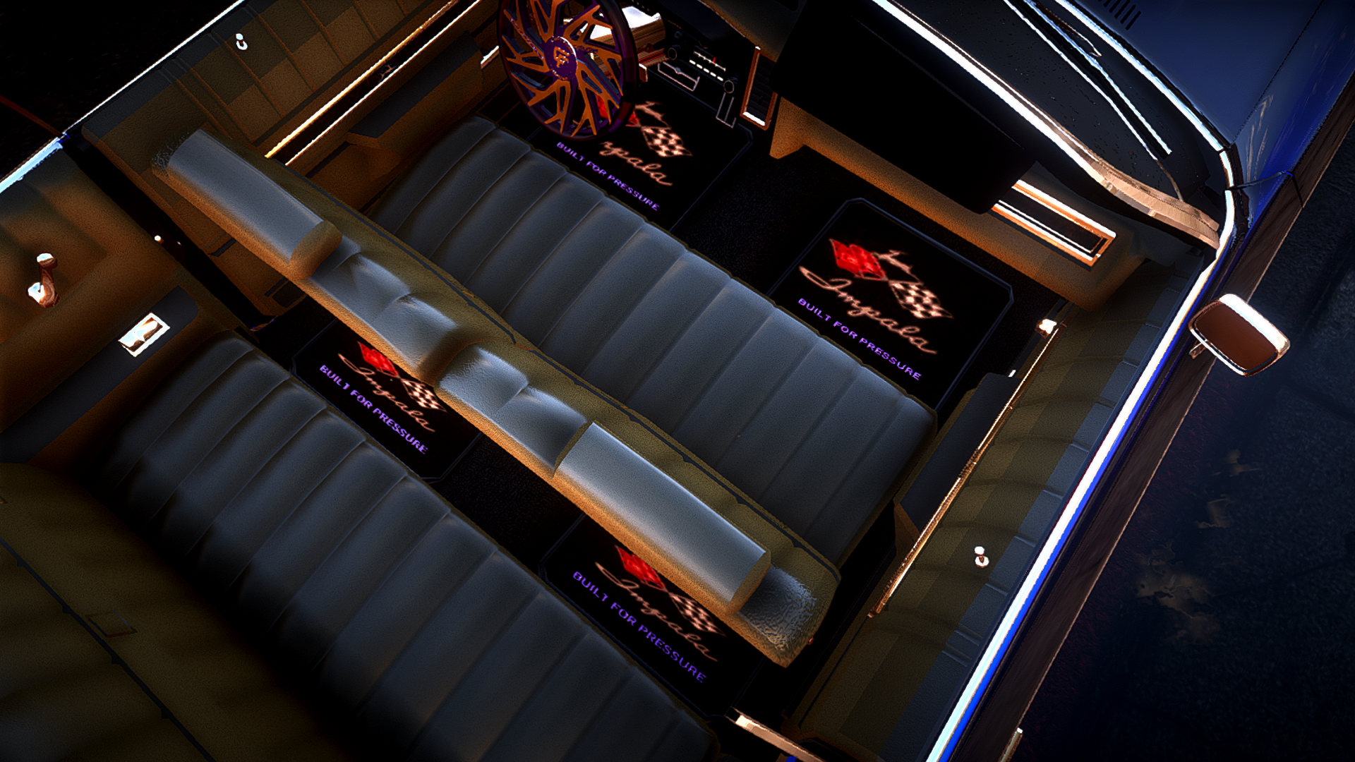 72 drop impala on corleone forged rims custom trunk and floor mats car is STORY MODE AND FIVE M READY