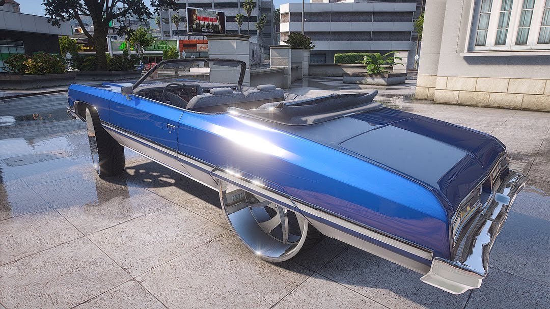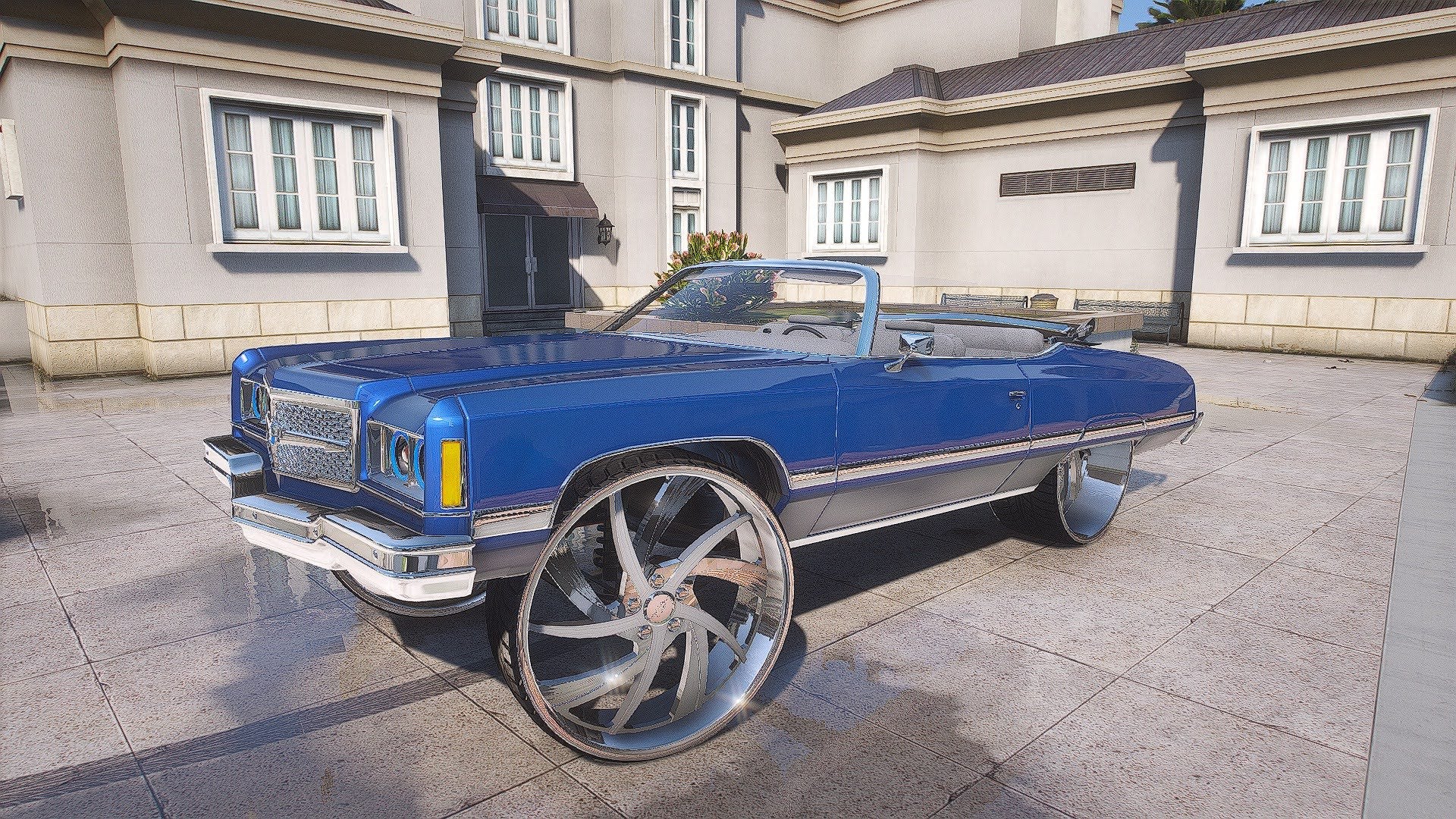 74 Donk Vert on Billets drop top with custom trunk story mode car is unlocked so if you want it FiveM ready you can do it