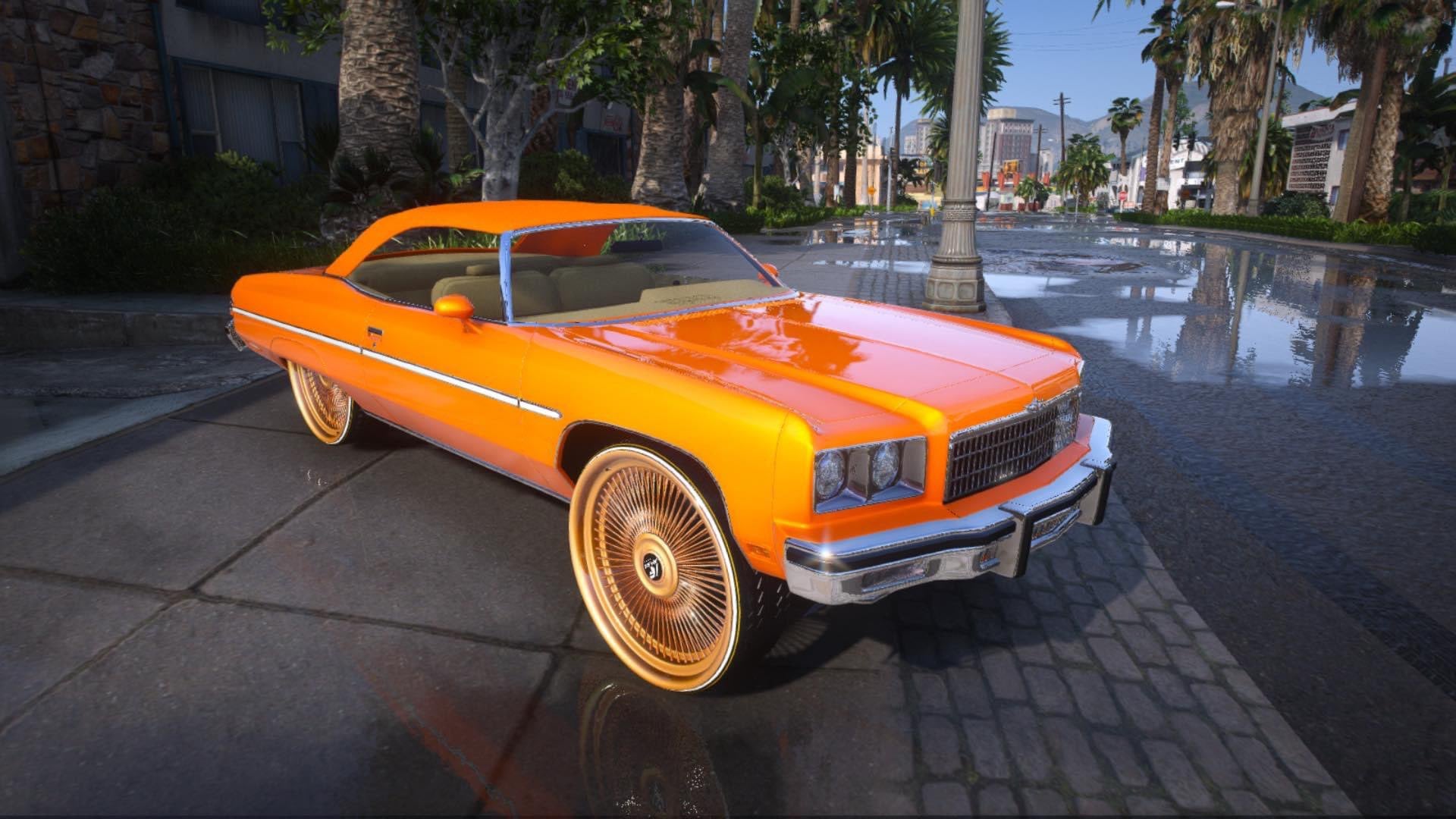 75 Caprice Donk on Amani spokes with matching steering wheel and custom trunk this is Story Mode only but car is unlocked and can be converted into FiveM ready