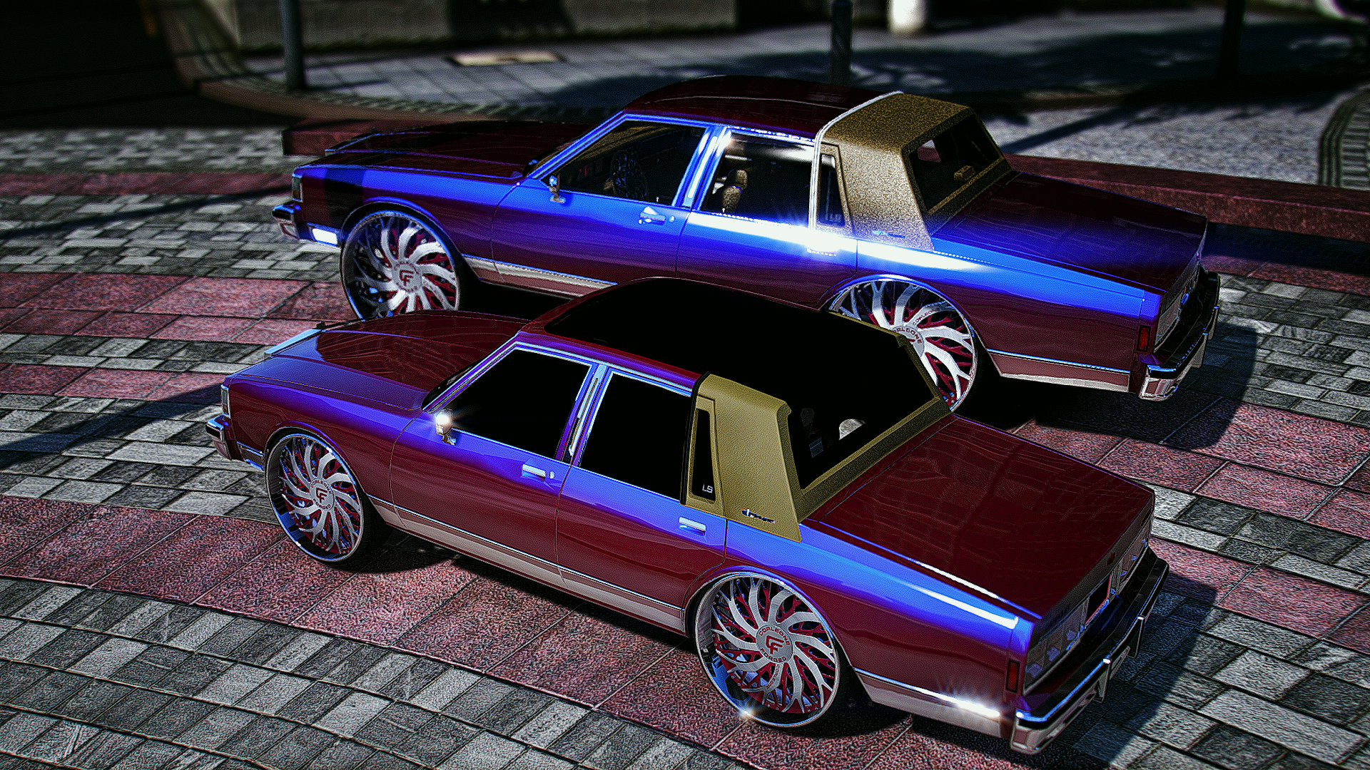 88 Box Caprice on Corleones with floating cap has custom trunk matching steering wheel has custom motor. Matching Go Kart these are Story Mode4 and FiveM ready