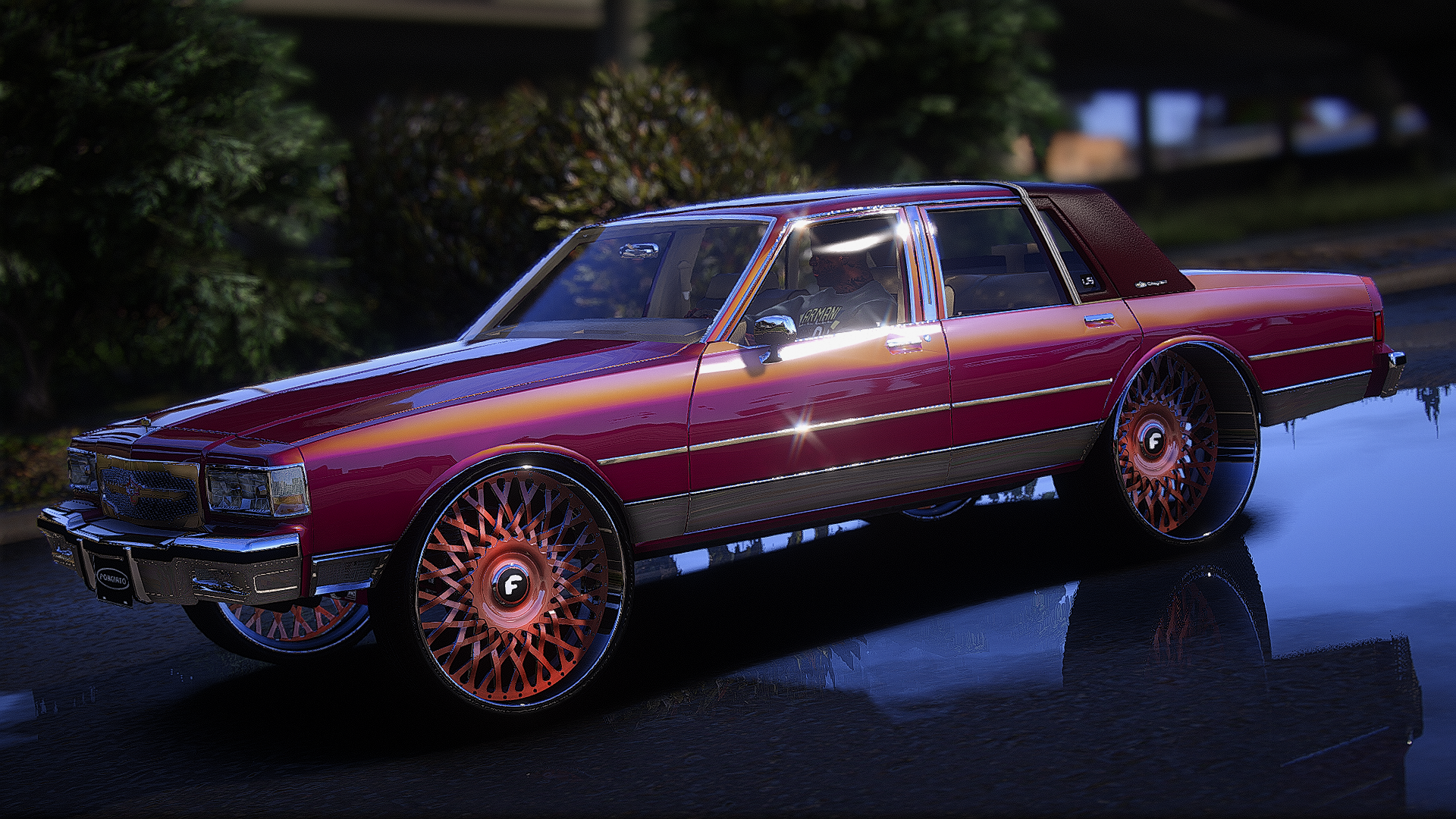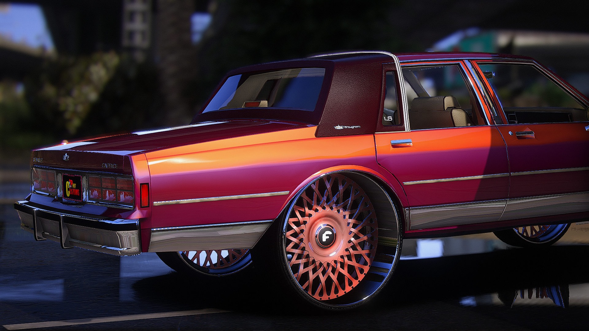 ls box chevy on forgiatos with the matching steering wheel custom trunk console motor floating caps neons headlights and grill SUPER NASTY!!!! STORYMODE AND FIVE M READY