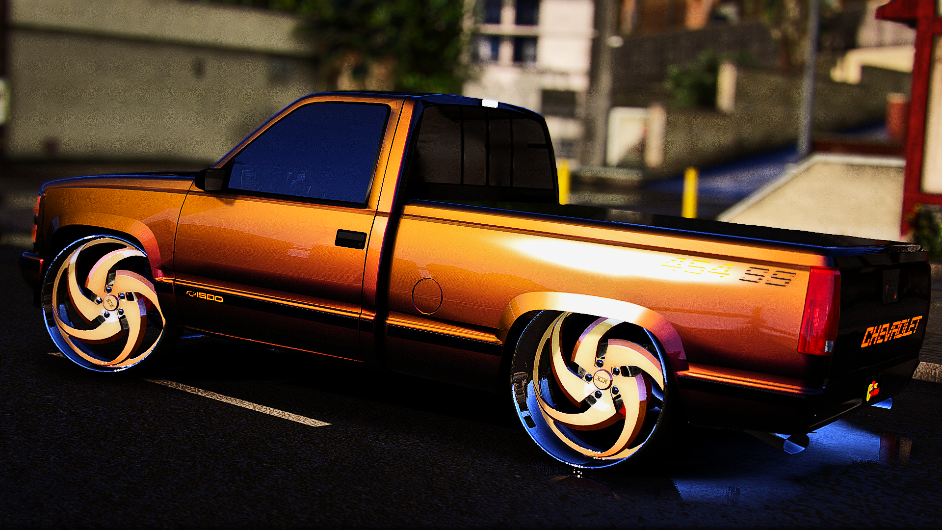 CLEAN ASS OBS SHORT BED CUSTOM CONSOLE DOORS AND LOUD PACK IN THE BACK WINDOW ON MTW BILLETS STORY MODE AND FIVE M READY