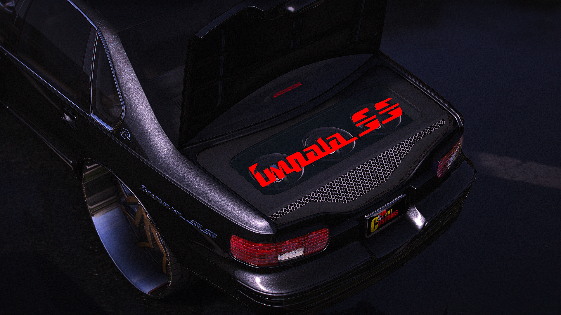 95 Impala SS on floating big cap Rucci Forged with matching steering wheel has custom trunk this is Story Mode and FiveM ready
