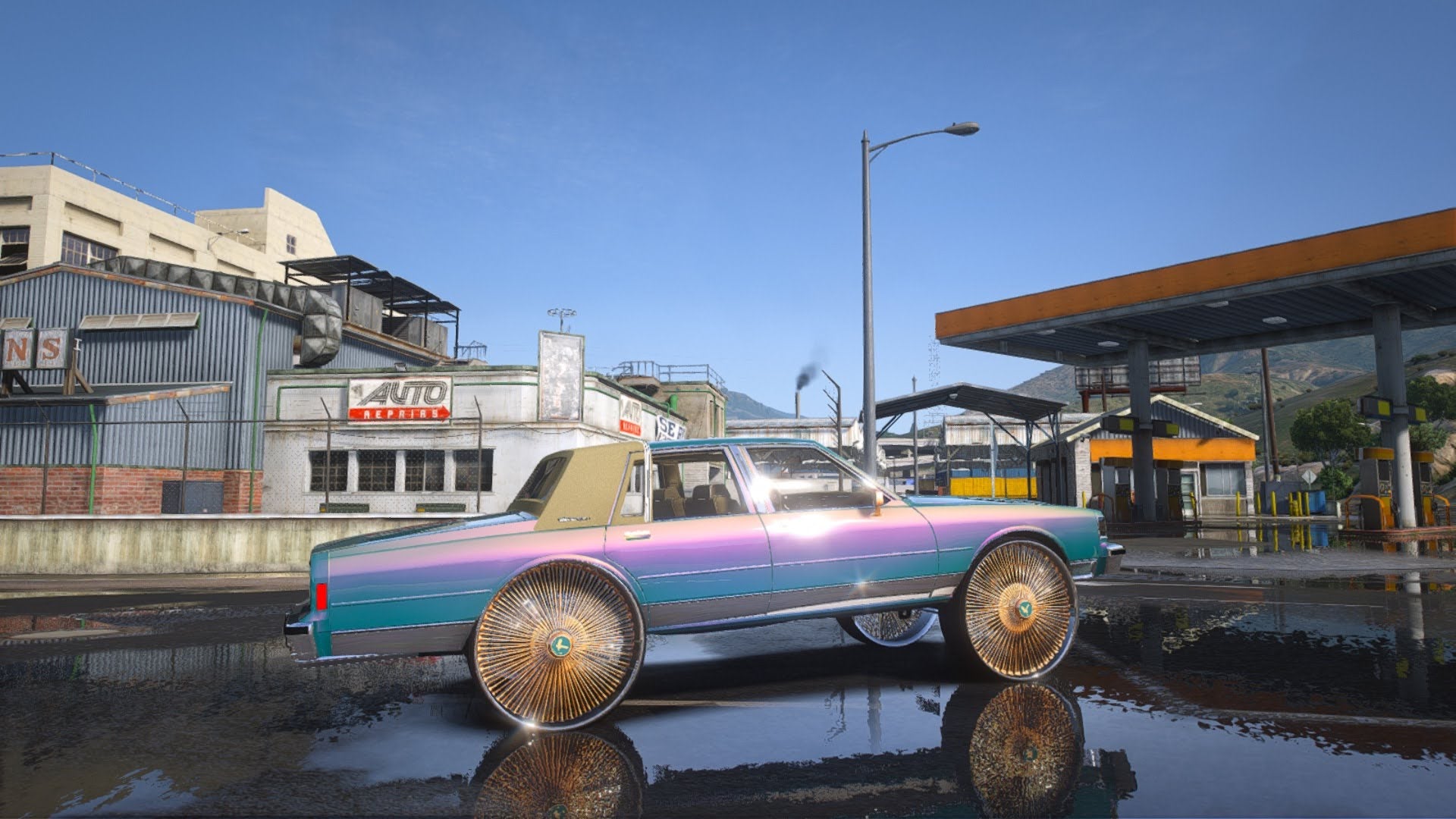 Box Caprice on Floating Daytons with matching steering wheel glass roof