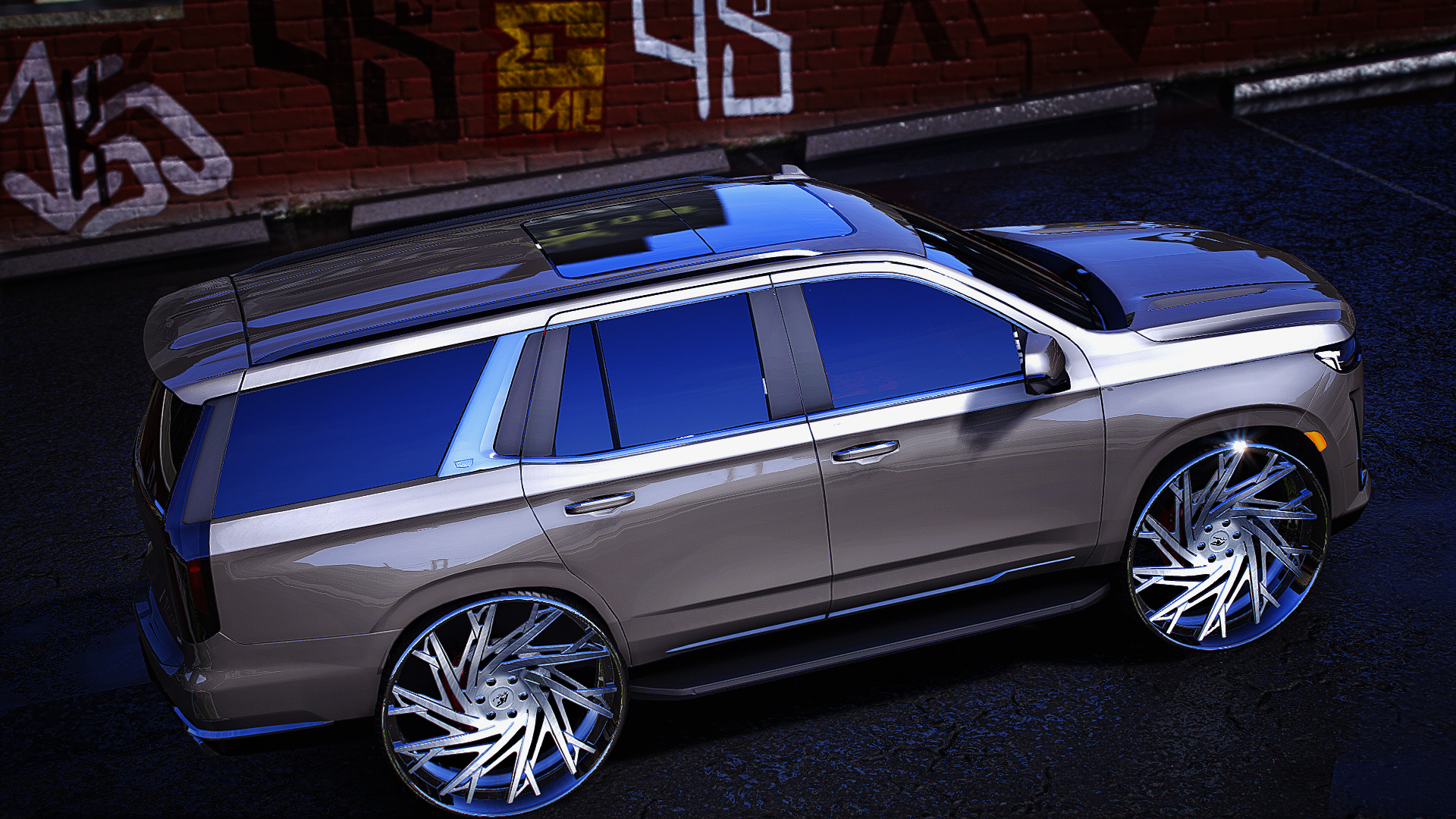 clean escalade truck on 32 inch amani rims STORY MODE AND FIVE M READY