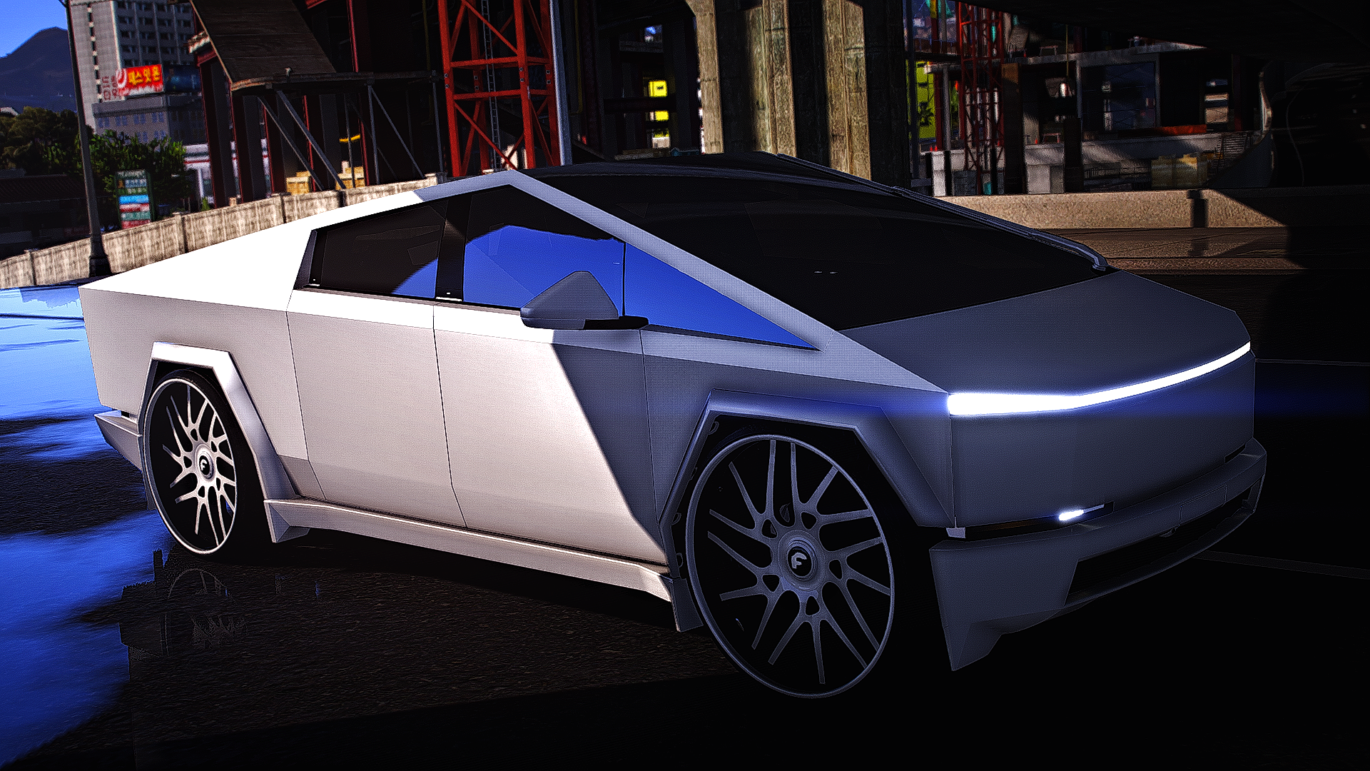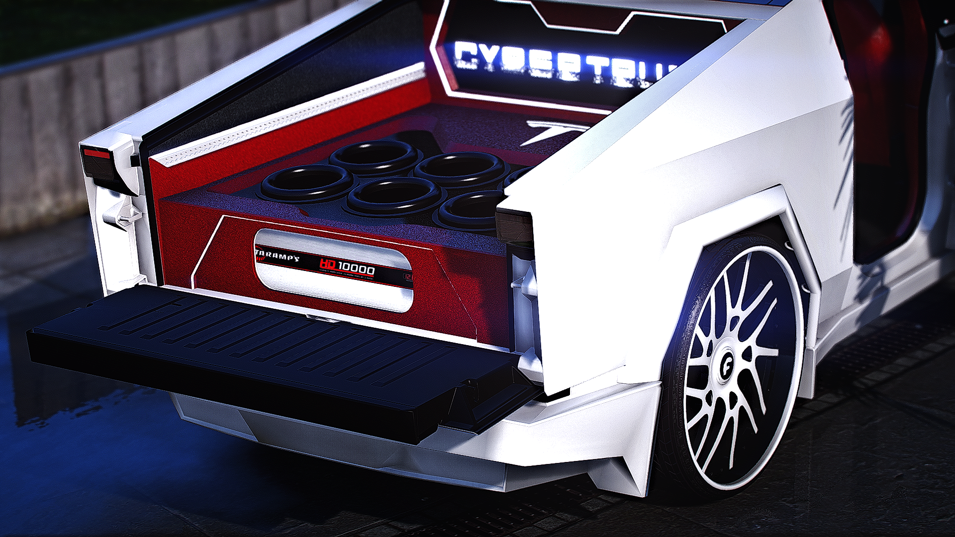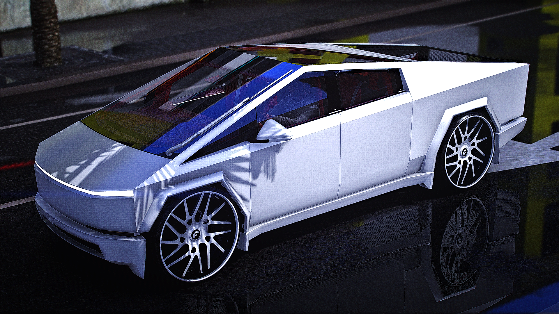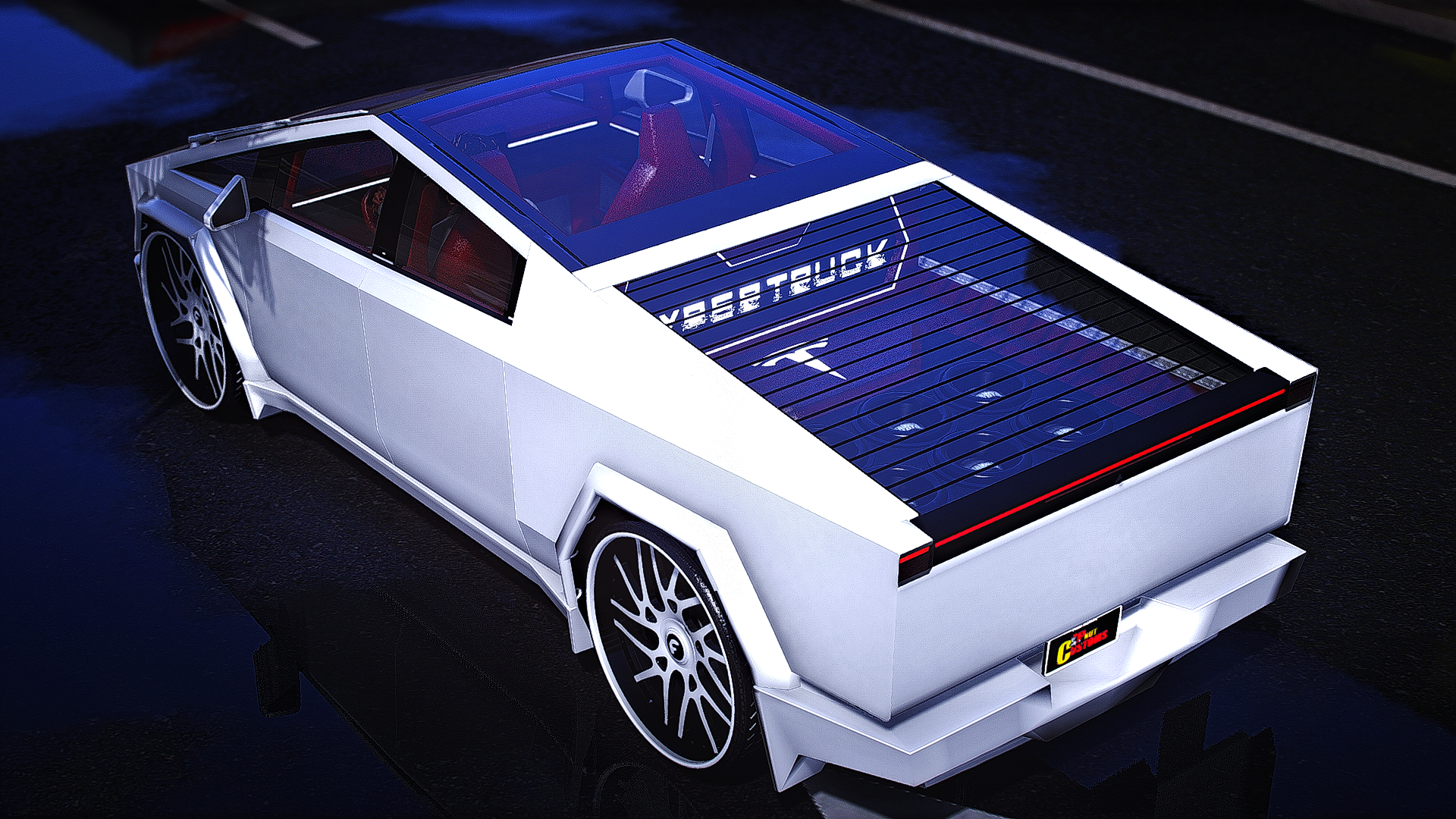 NASTY CYBER TRUCK ON 32 INCH FORGIATOS WITH THE FLOATING CAPS COMPLETELY RETEXTURED INTERION AND A CUSTOM TRUNK STORY MODE AND FIVE M READY