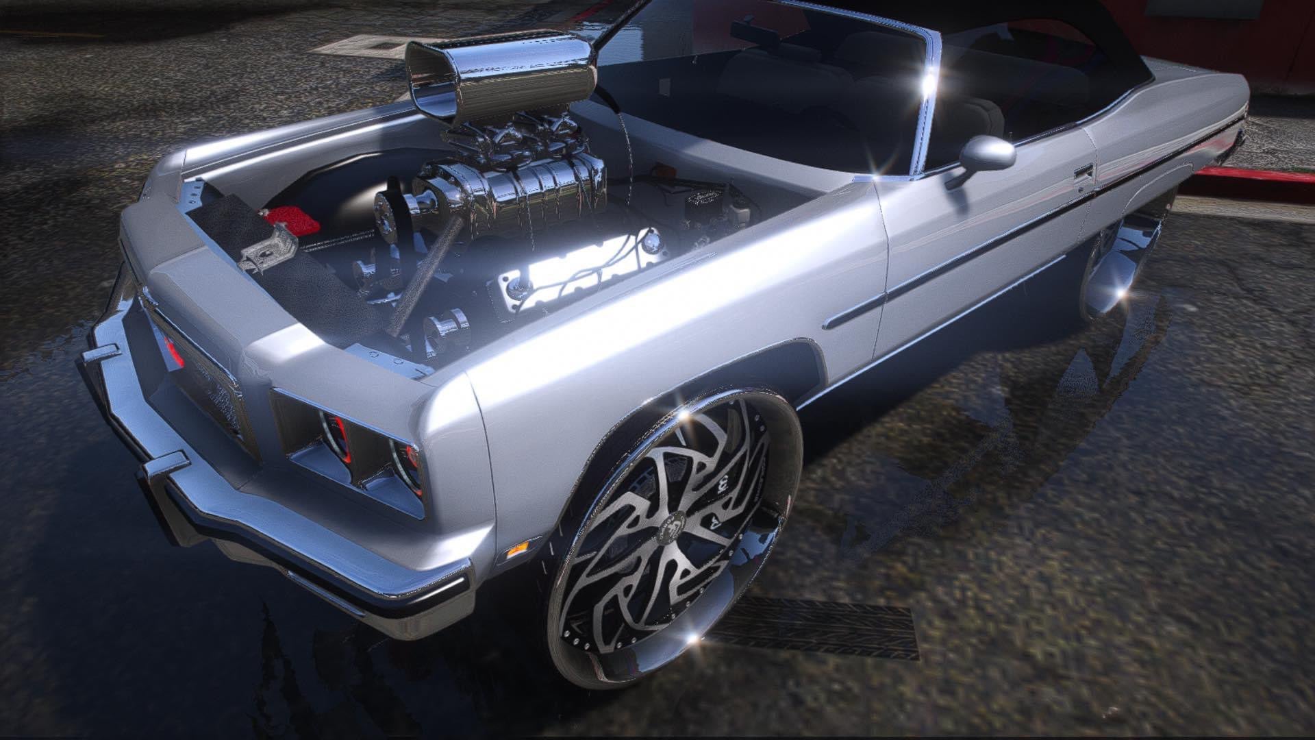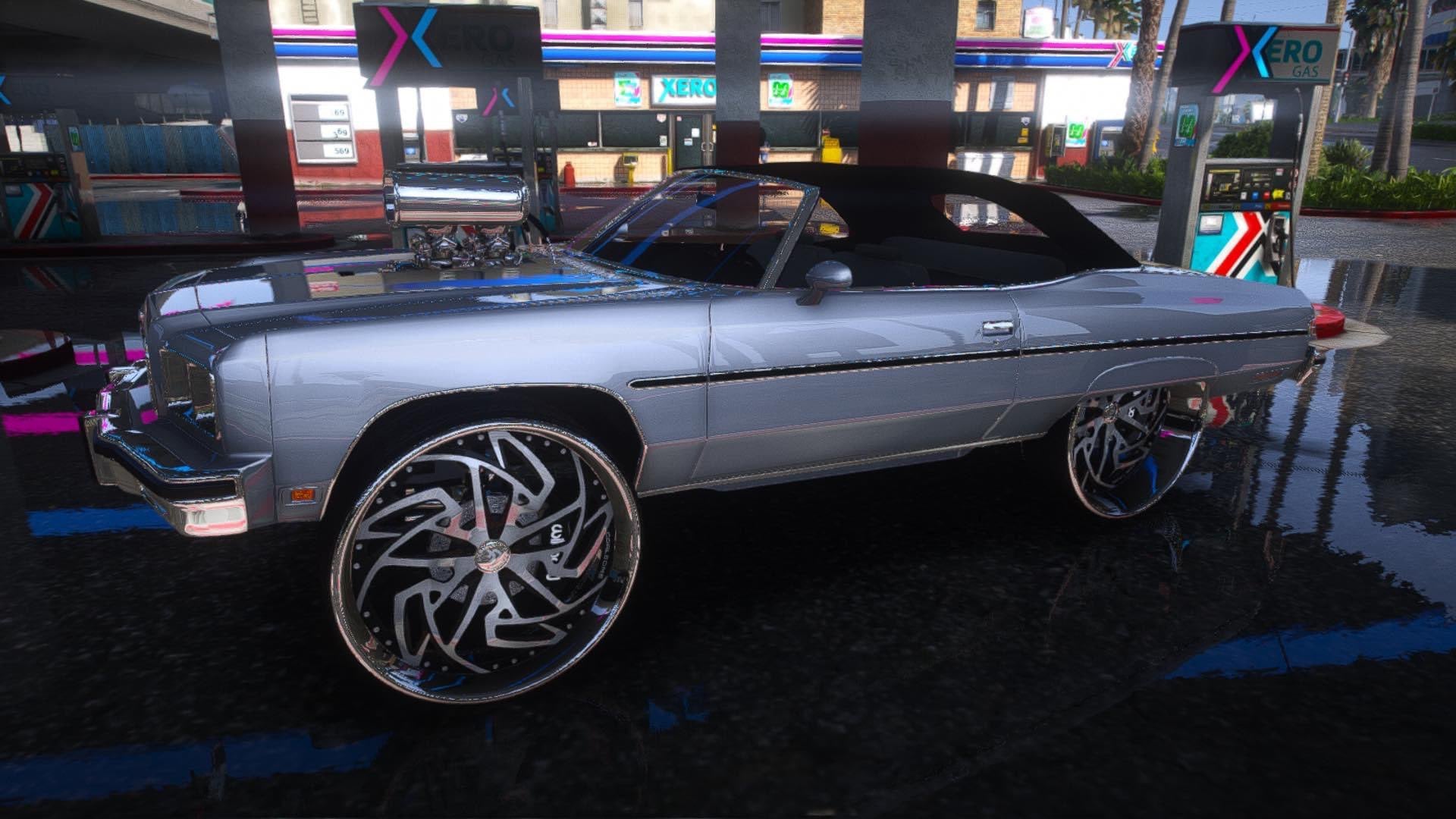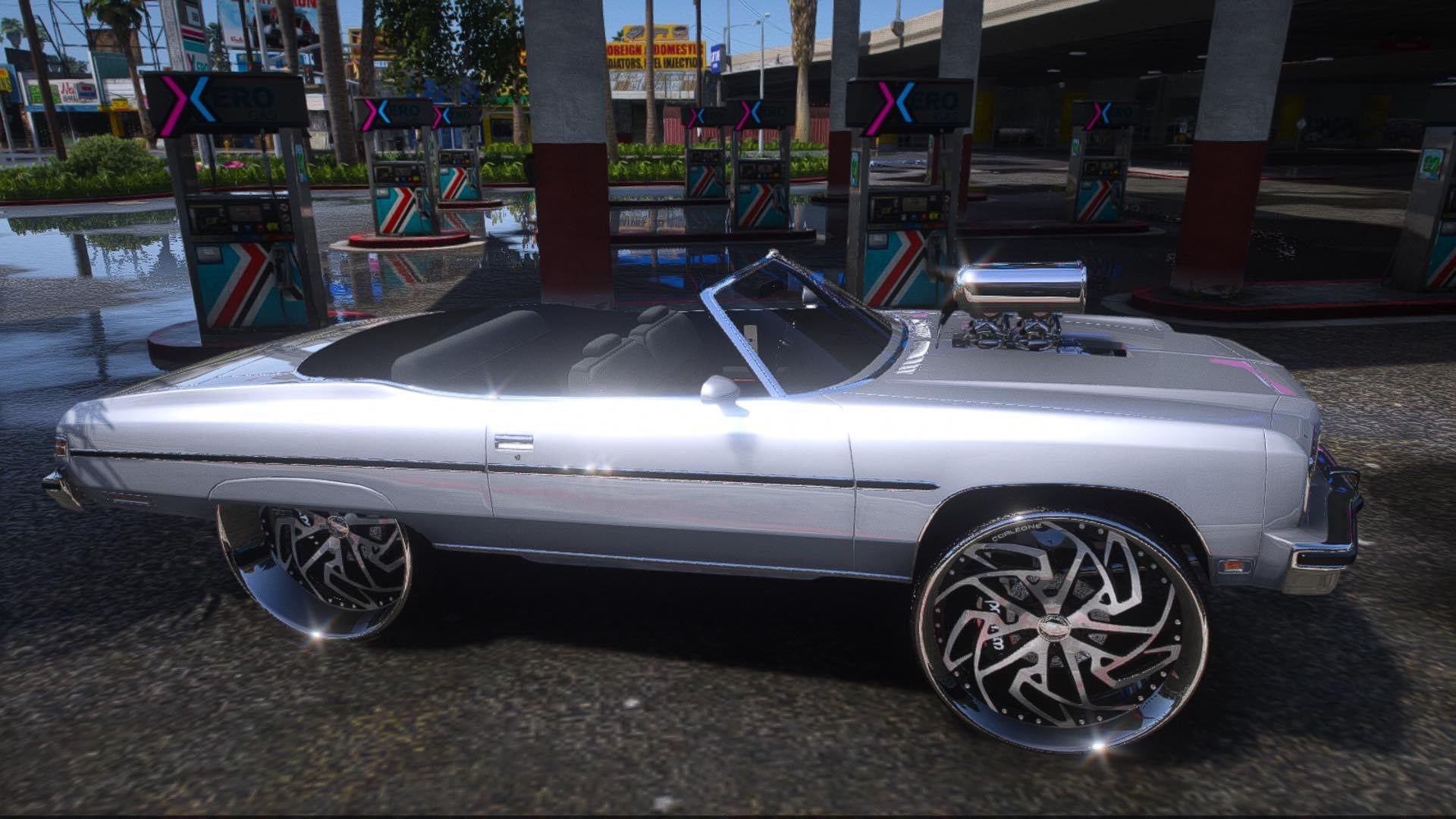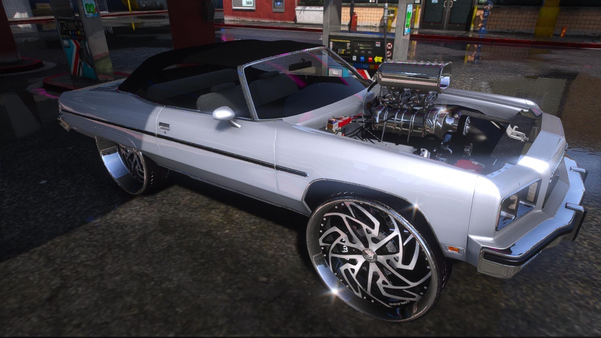 Drag 75 Donk Drop Top on Staggered Corleone Forged with matching steering custom trunk and blower this is Story Mode only but car is unlocked and can be converted to FiveM ready