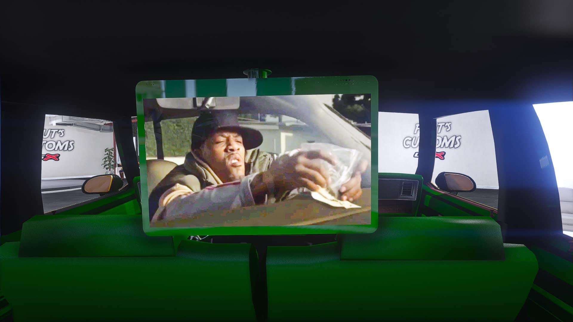 How High themed Caprice on pot leaf floaters with matching steering wheel and flip down TV this Story Mode only but car is unlocked and can be converted to FiveM ready