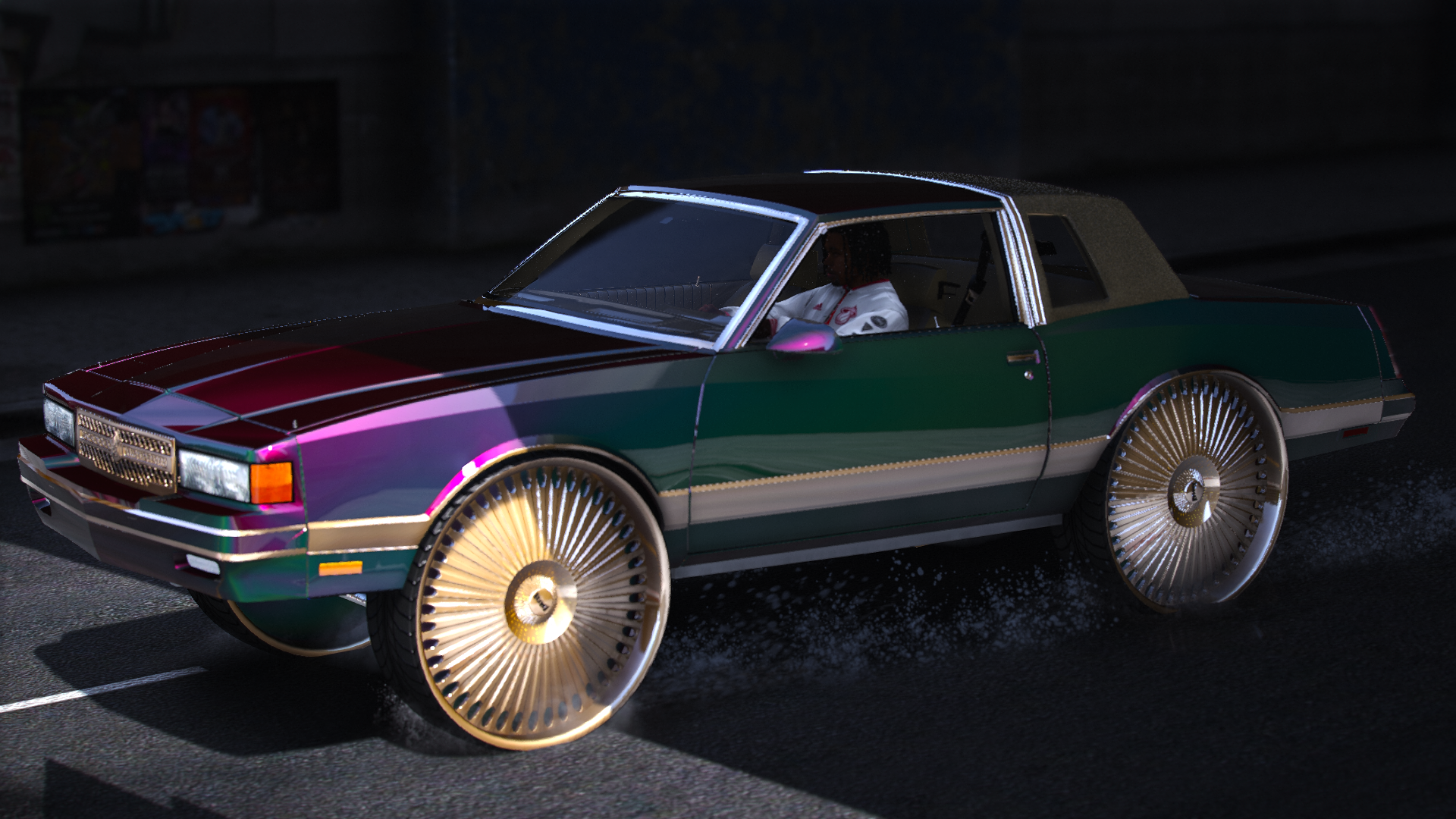 87 LS Monte on DUB Floaters with matching steering wheel corvette motor and custom trunk this is Story Mode and FiveM Ready
