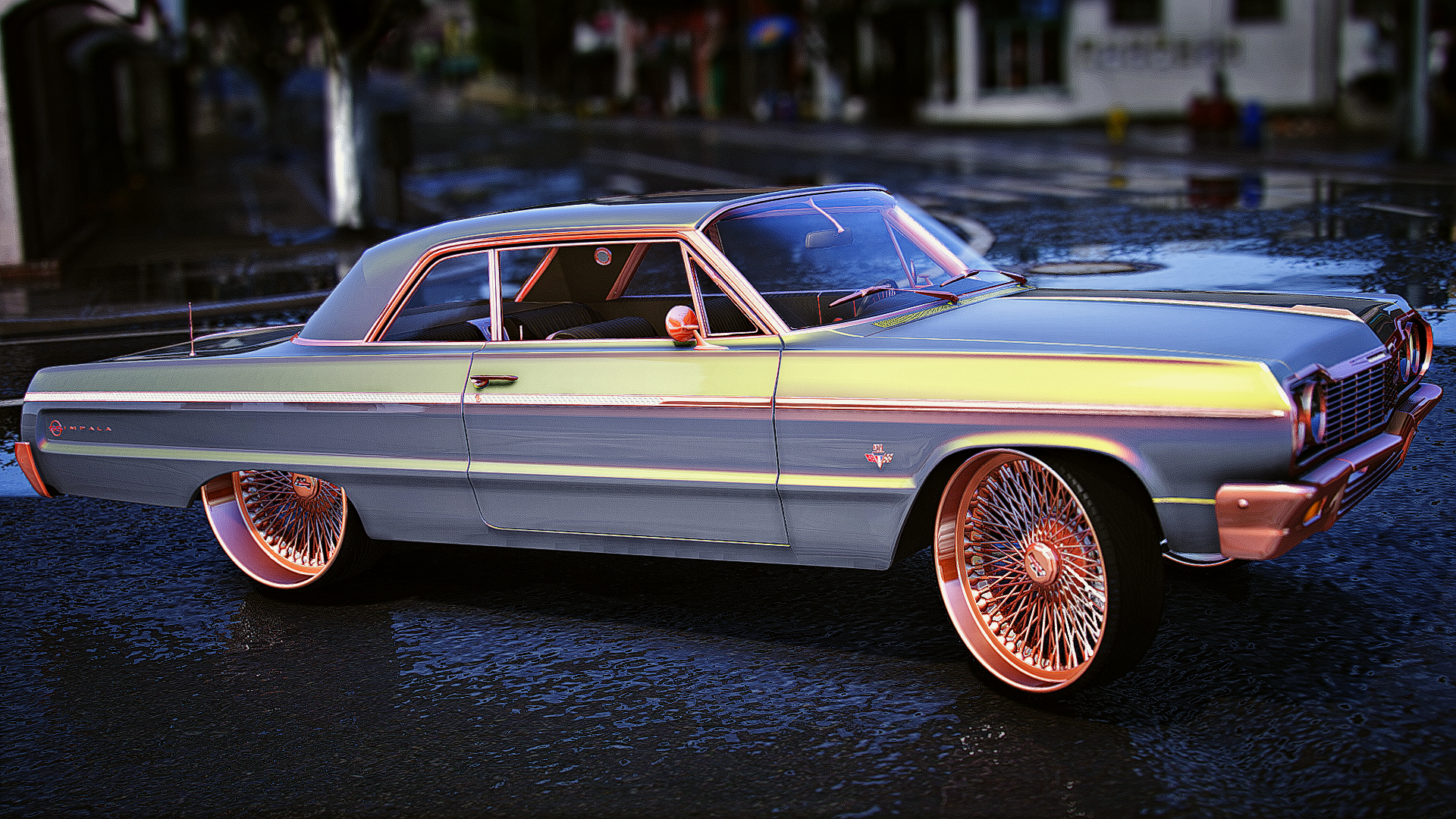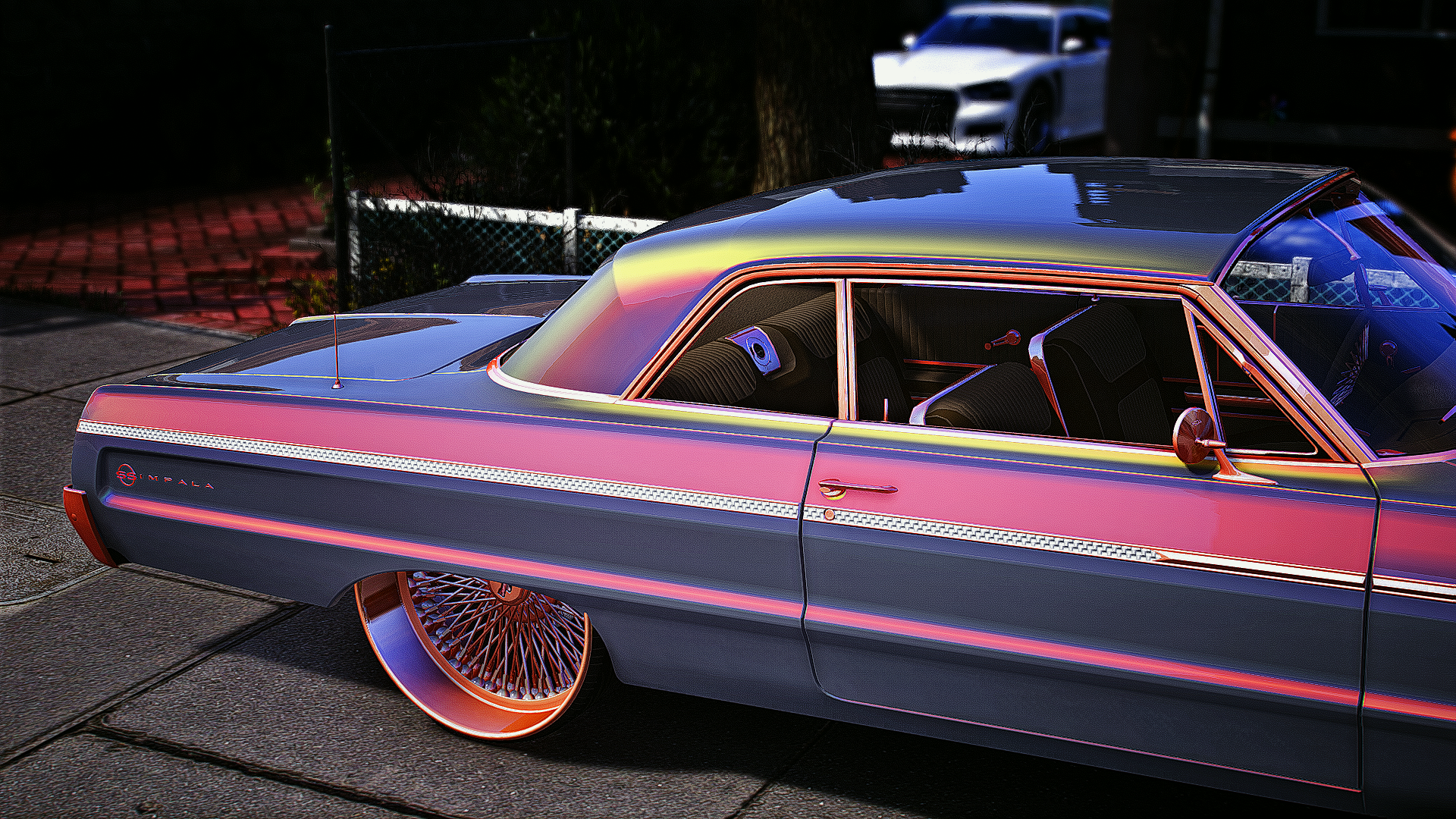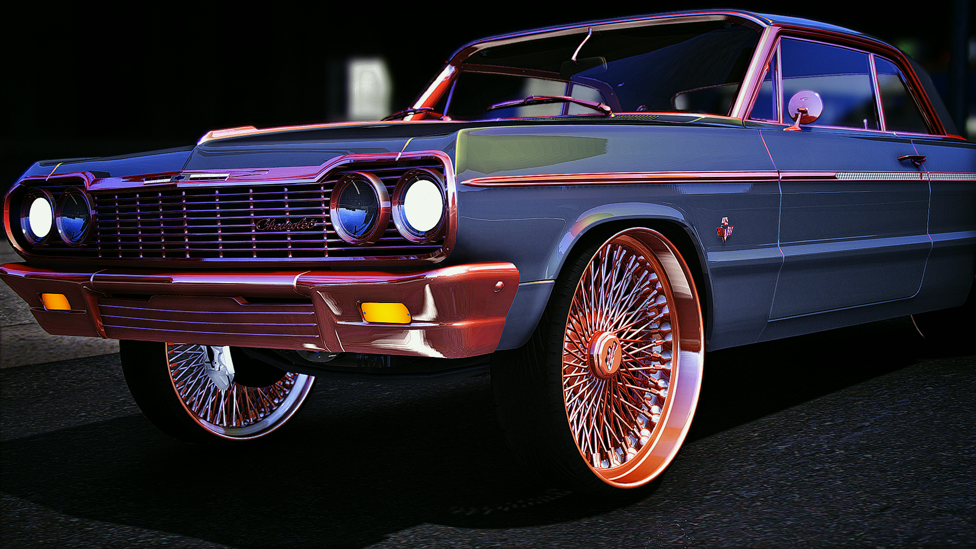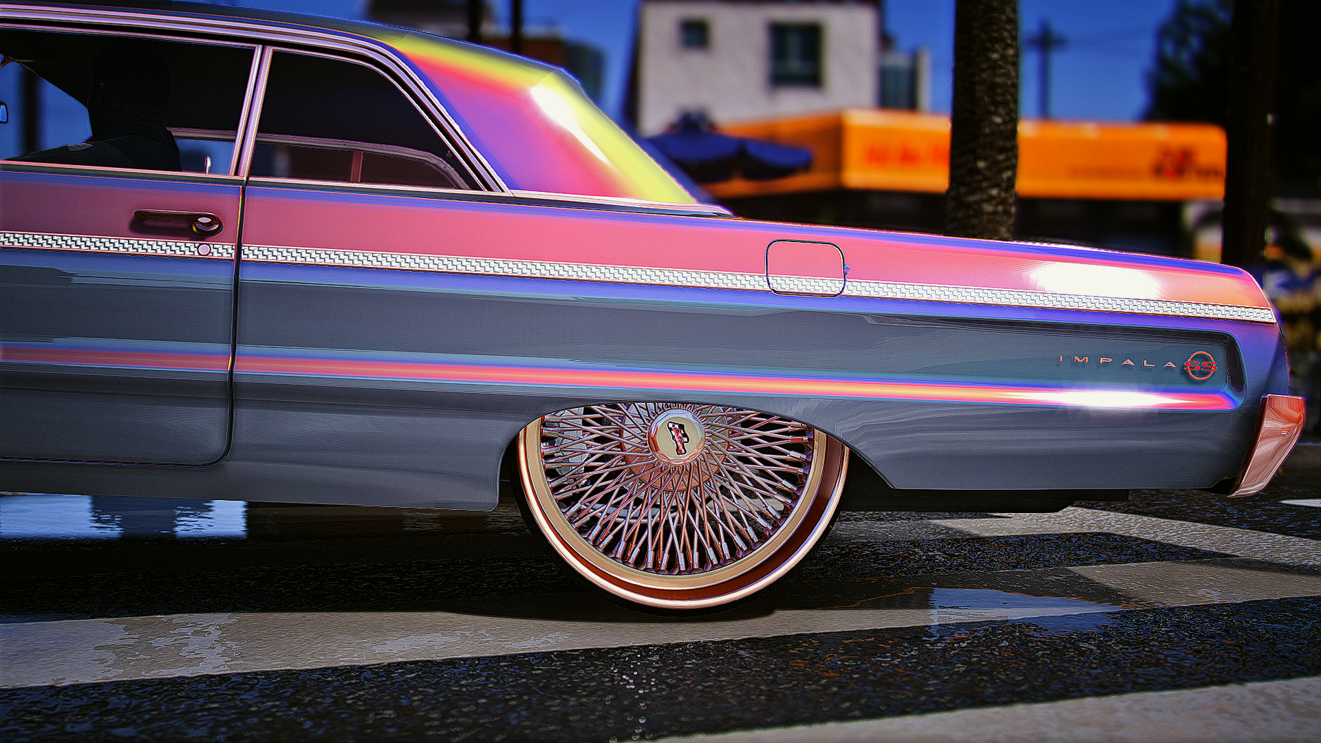 64 impala on staggered cross laced daytons with the lt4 motor custom trunk matching steering wheel super clean whip