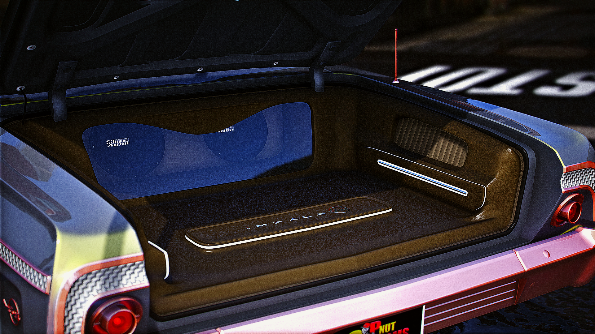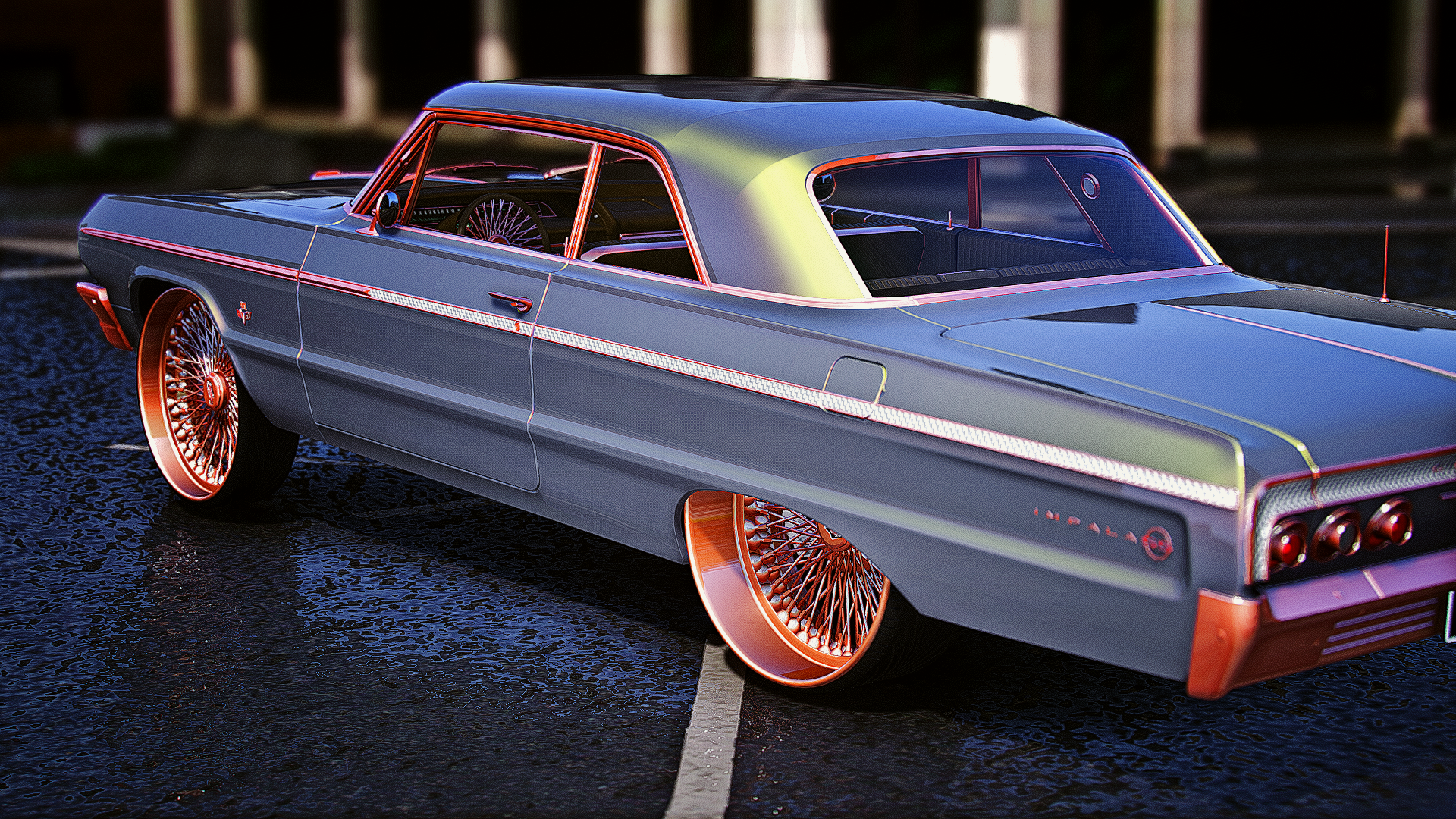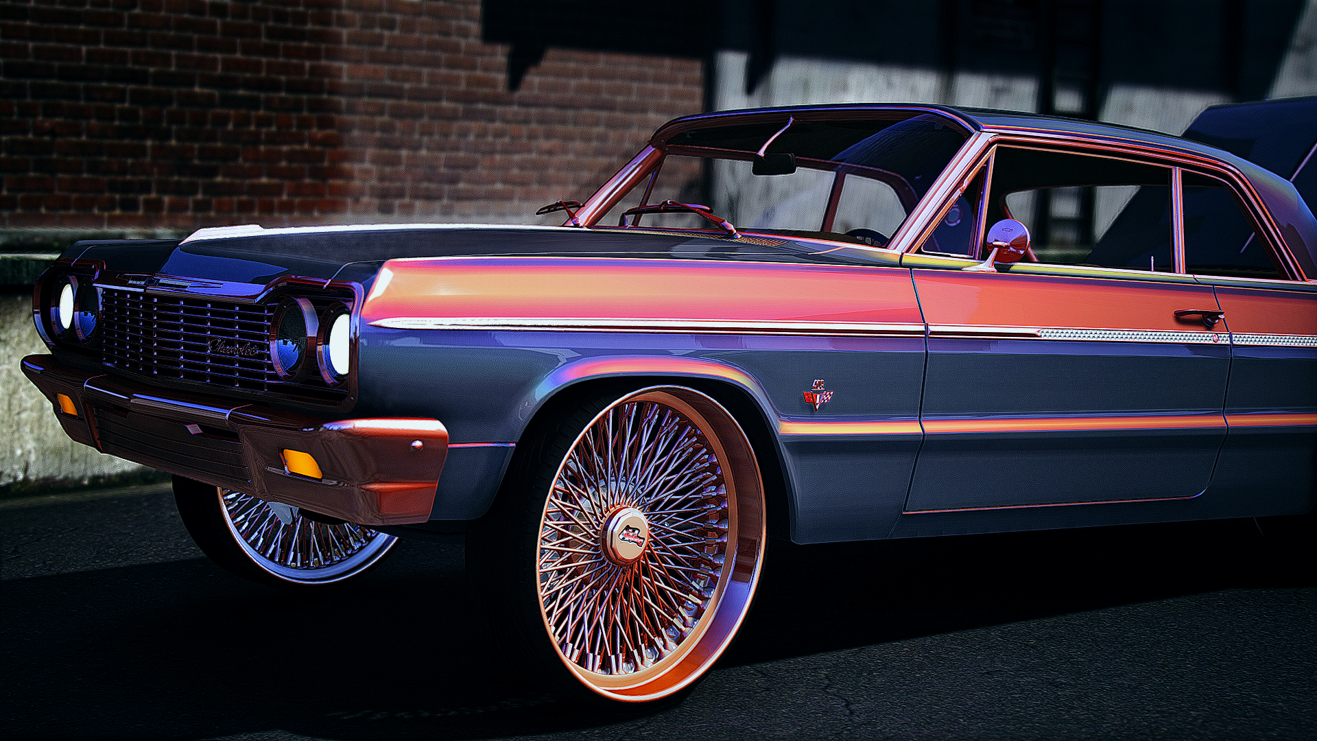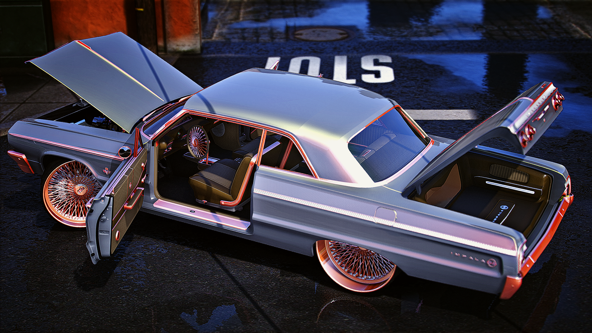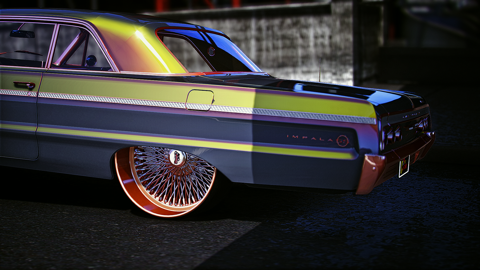 64 impala on staggered cross laced daytons with the lt4 motor custom trunk matching steering wheel super clean whip
