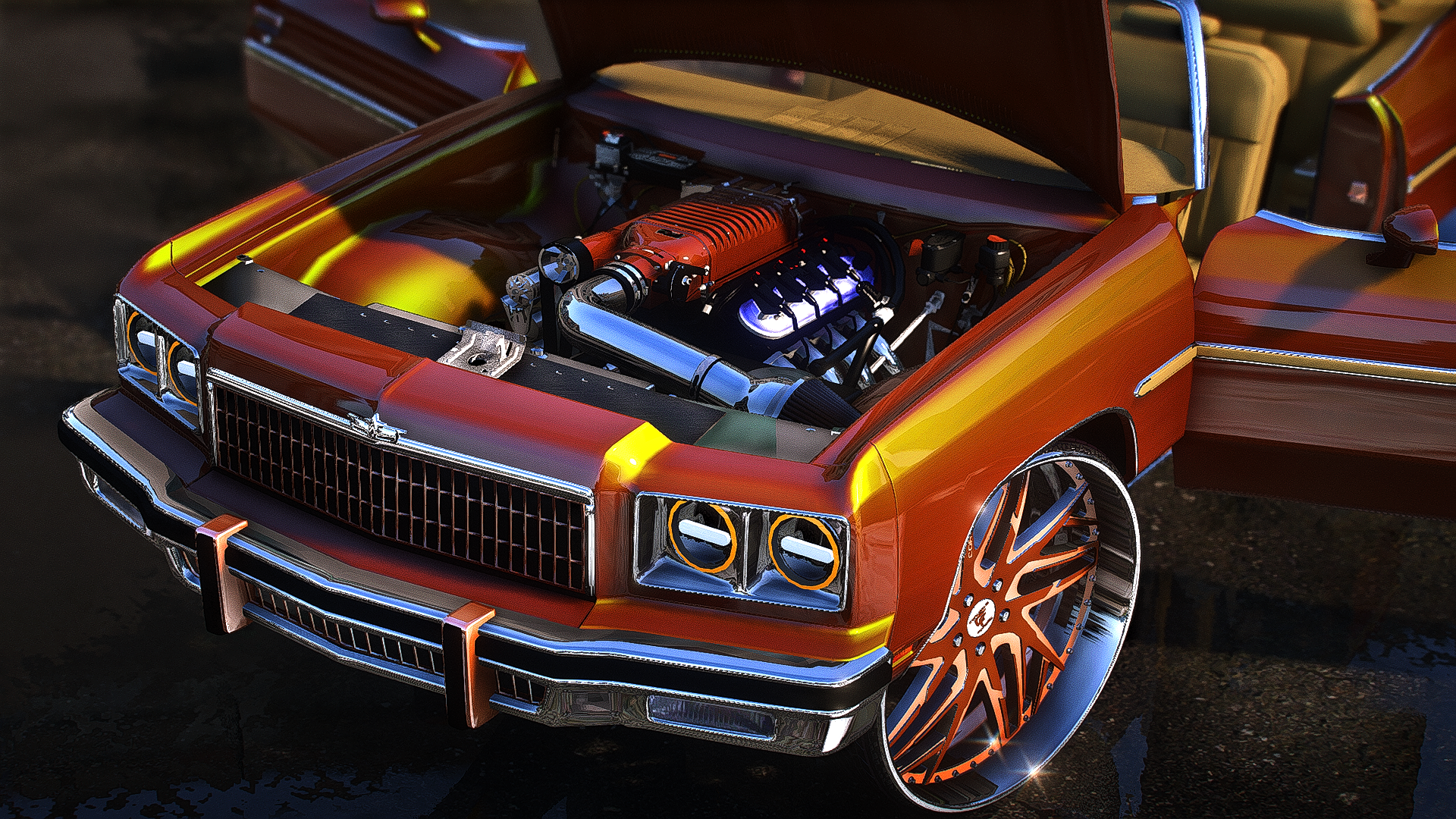 drop 75 caprice with the animated convertible roof on 2024 corleone rims custom trunk and motor console and head lights