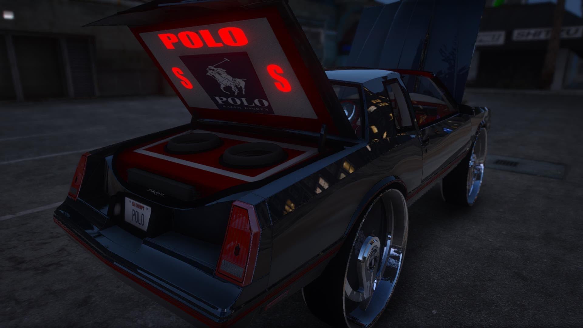 Polo themed Monte Carlo SS on DUB Floaters has Polo back plate T-Tops matching steering wheel has custom Polo interior and custom Trunk this is Story Mode only but can be converted to FiveM ready