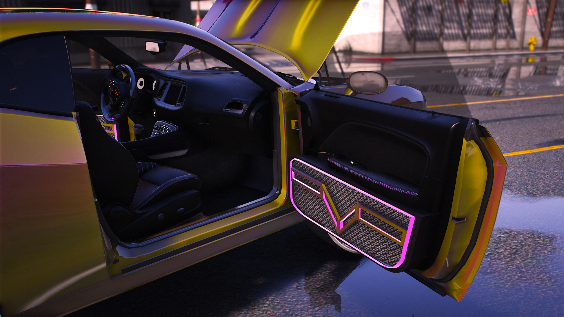 red eye challenger on 30 in rucci swerves custom door panels and a custom trunk