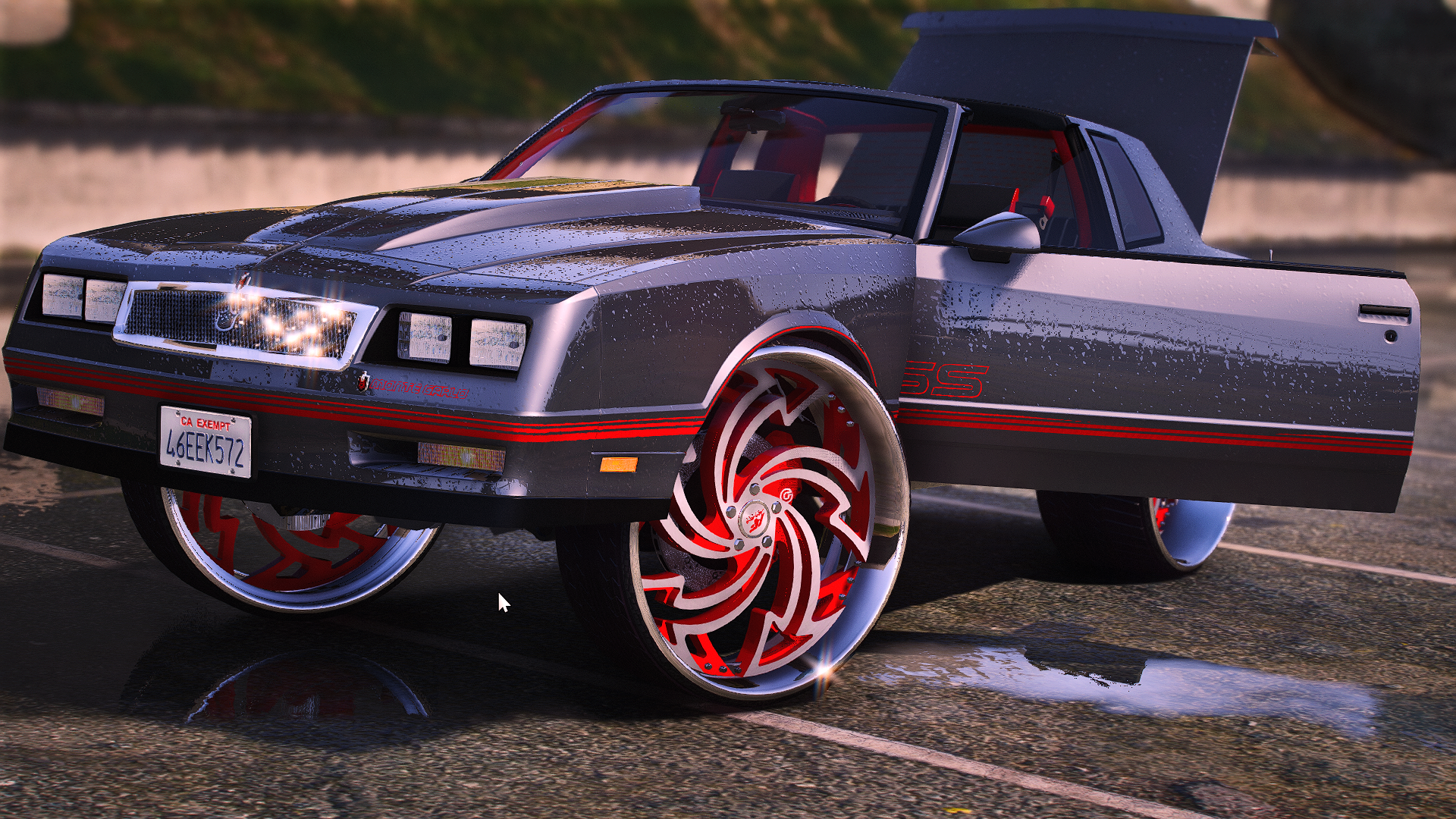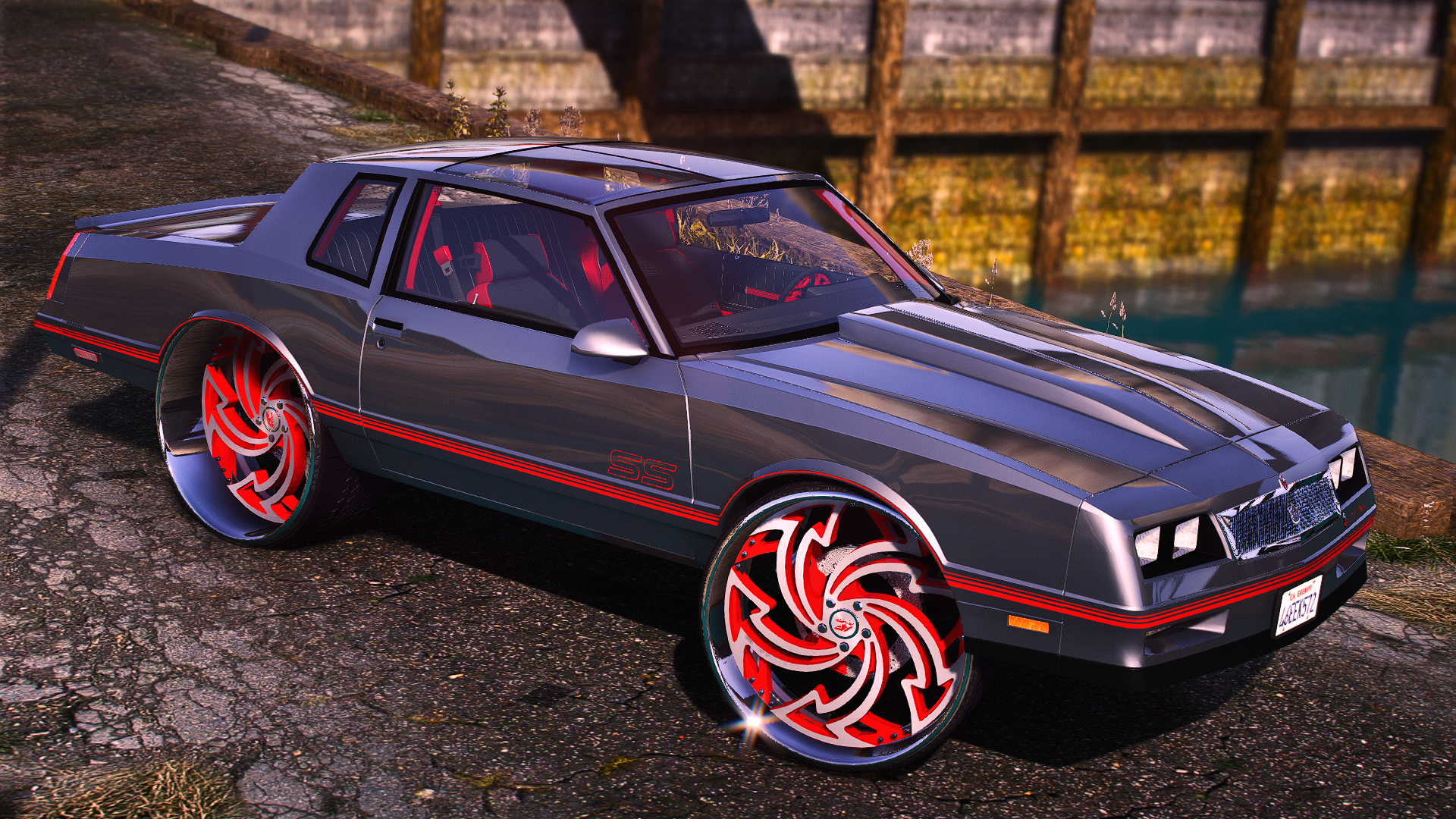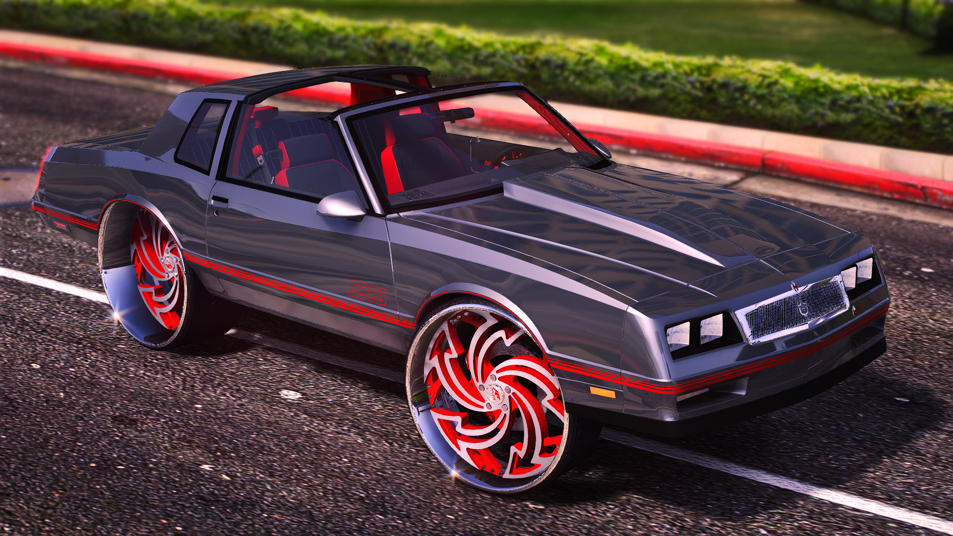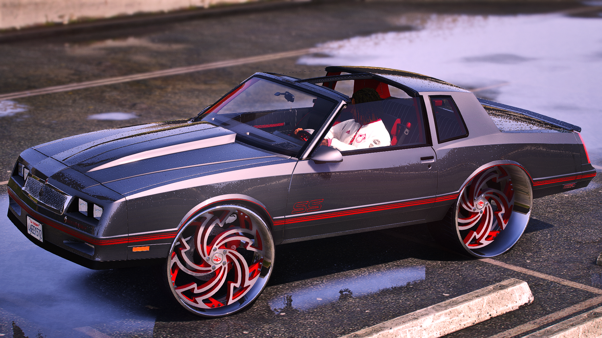 SS Monte Carlo with TTops on Staggered Amani Forged with matching steering wheel custom door panels and custom trunk with Pro charged Ls motor this is Story Mode and FiveM ready
