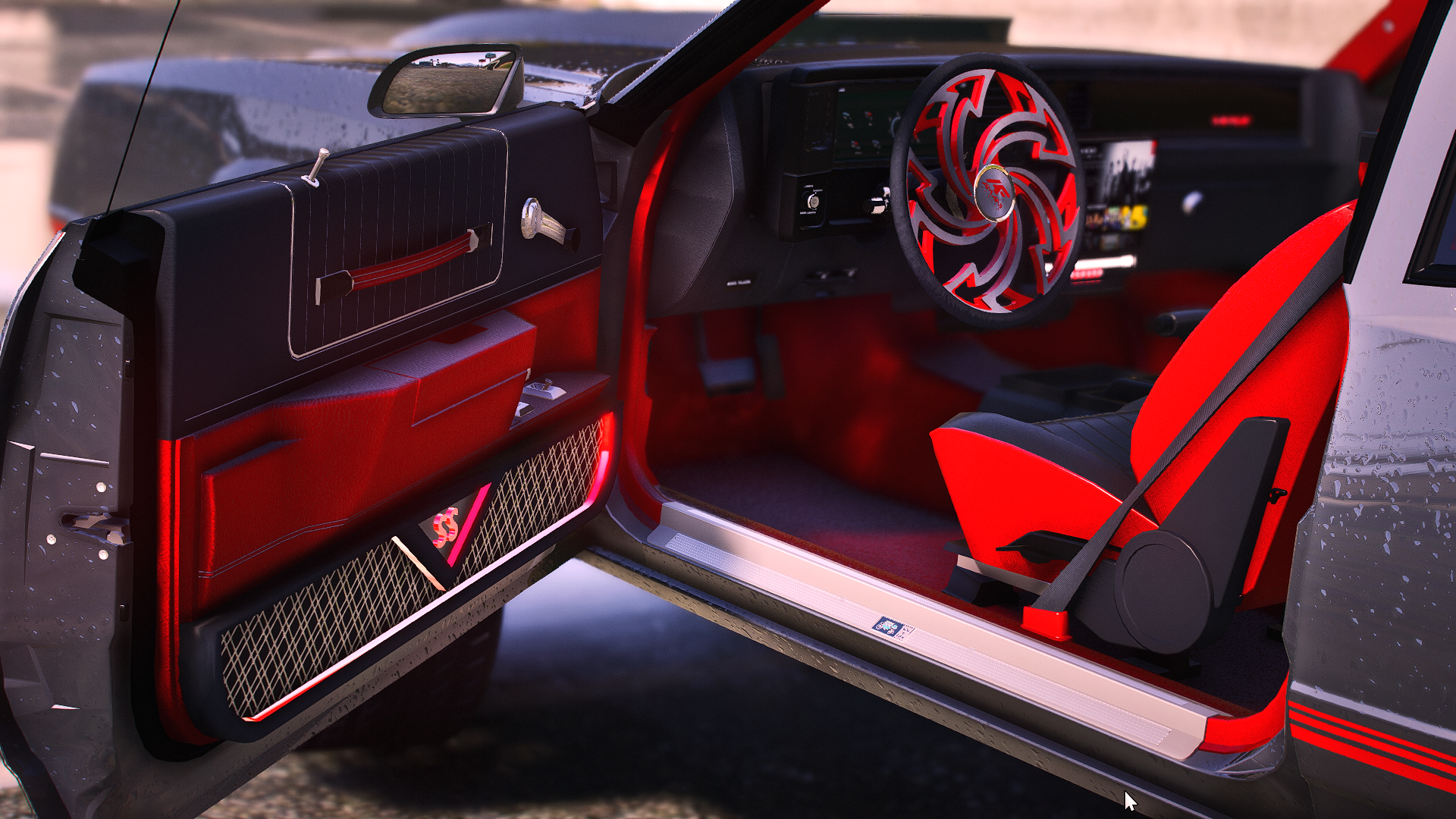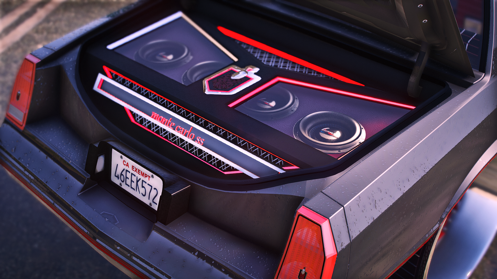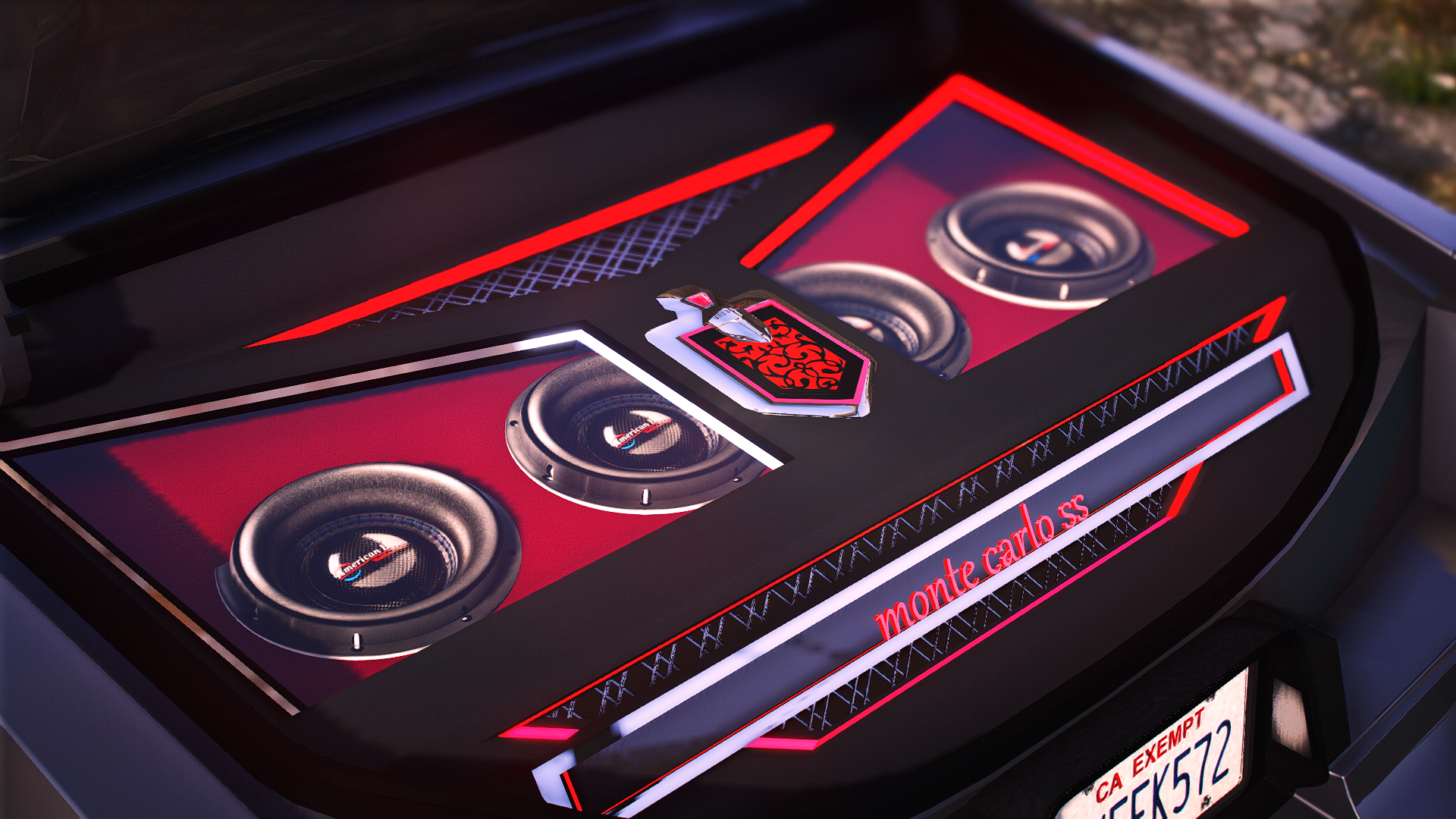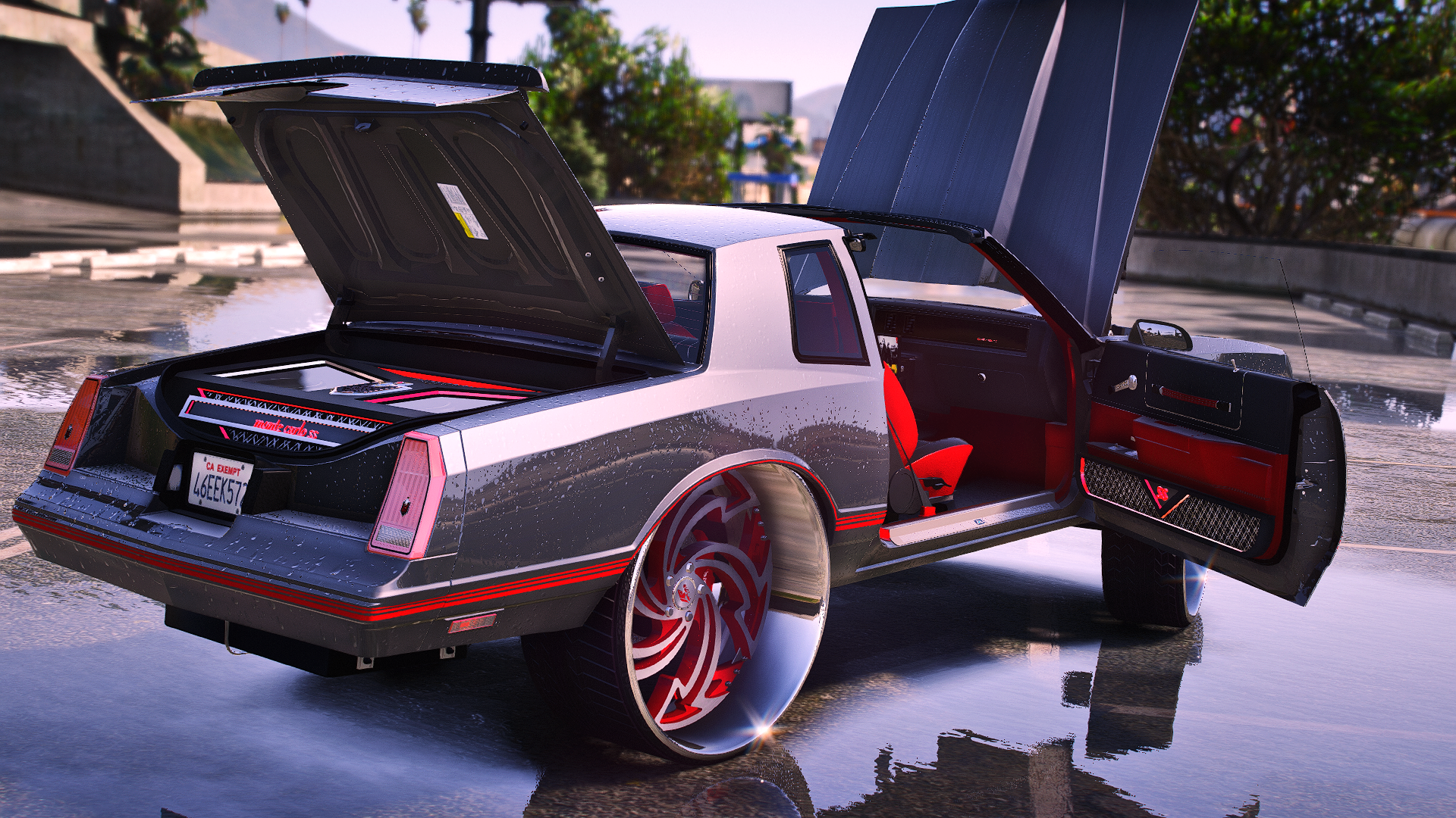 SS Monte Carlo with TTops on Staggered Amani Forged with matching steering wheel custom door panels and custom trunk with Pro charged Ls motor this is Story Mode and FiveM ready
