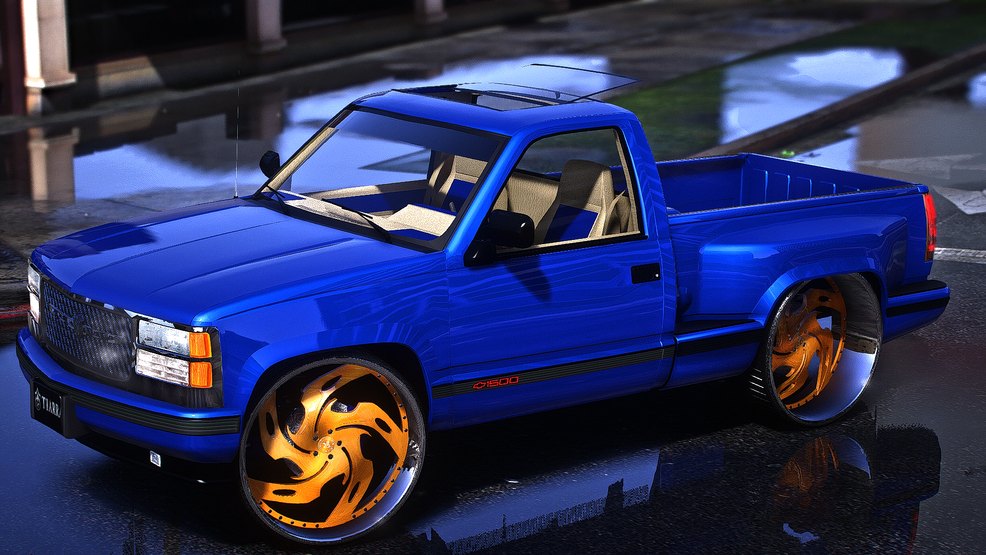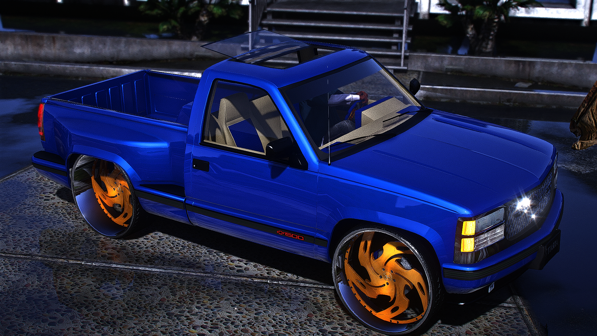 step side truck with the animated sunroof on staggered ruccis with the matching steering wheel and a lsa motor qa-1 suspension story mode and five m ready